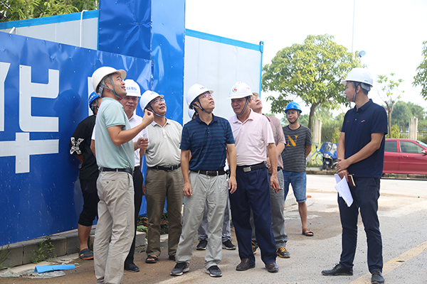 学校党委常委、副校长曾彦,学校党委常委、统战部部长、党校办主任任才茂,后勤基建处处长卢世标一行4人陪同考察。(俞用庆 摄)