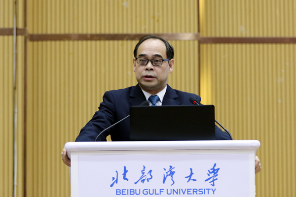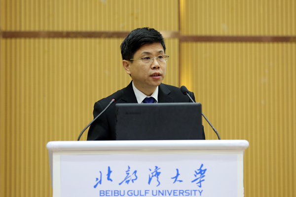 教育部学校规划建设发展中心创新发展处副处长王丽萍、自治区教育厅国际合作与对外交流处处长罗耀光、全体在钦校领导及区市相关领导出席大会,区内兄弟院校相关领导和学校师生共四百余人参加大会。开幕式由学校副校长唐高华主持。