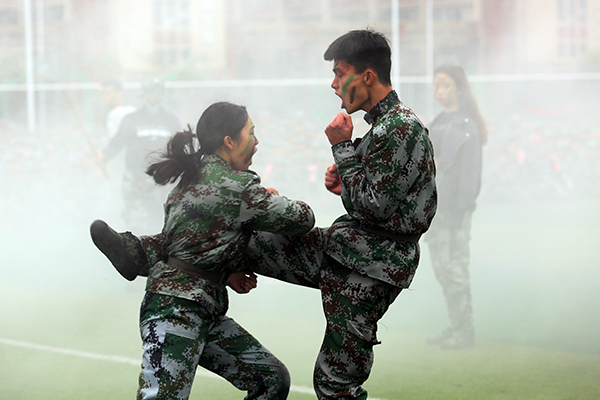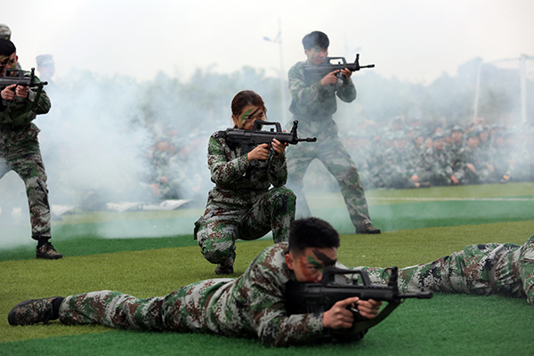 持枪方阵、分列式方阵、女子队列方阵、拳术方阵、匕首方阵、战术方阵……今年的新生军训汇演中,三千多名萌新用他们燃爆全场的实力为大学里的第一次“大考”交上了一份杠杠的答卷。