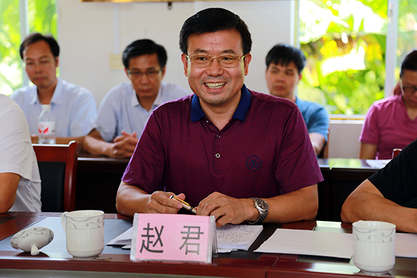 座谈会上,赵君书记和博白县委书记罗宗光及相关县政府部门领导、乡镇领导及驻村第一书记,共同研究推进脱贫攻坚工作和脱贫攻坚共建项目合作事宜,参会人员重点围绕加强农产品采购促进消费扶贫、开展船员驾驶食品安全检测等专业技能培训、国家通用语言文字推广等帮扶合作项目进行深入探讨,并达成合作意向。