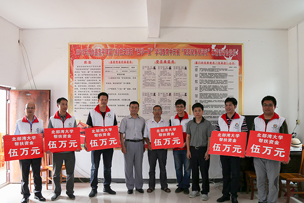 赵君书记、韩峻峰校长代表学校向各定点村建设项目给与帮扶资金