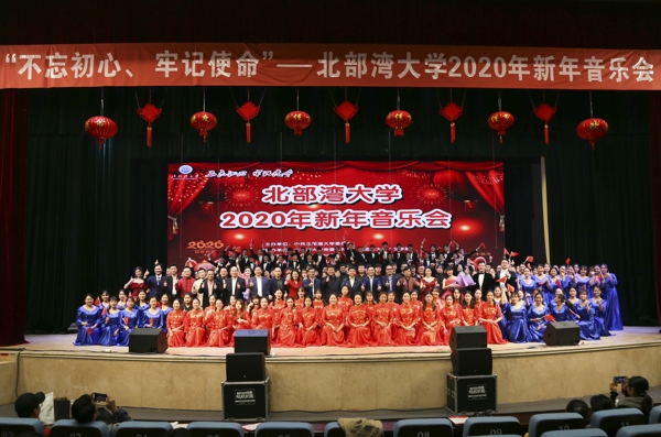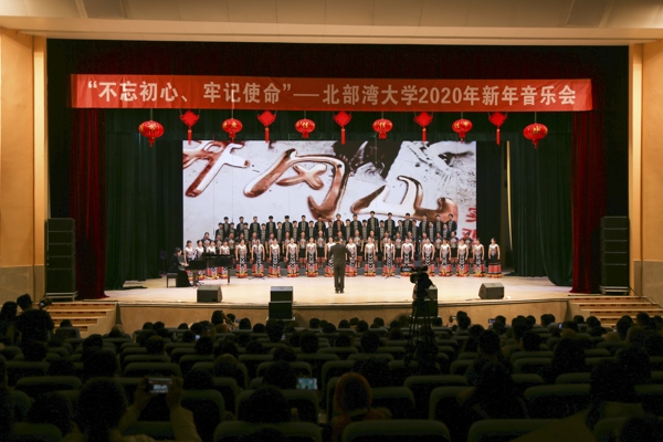 12月30日晚,beat365官网“不忘初心、牢记使命”2020年新年音乐会在礼堂隆重举行。学校党委书记赵君,校长韩峻峰,党委副书记陈锦山、陈湘如,纪委书记覃宇环,广西鸿翔船务公司、中马产业园中交城公司等校企合作代表与学校师生、社会各界人士1500余名共同欣赏了音乐会。