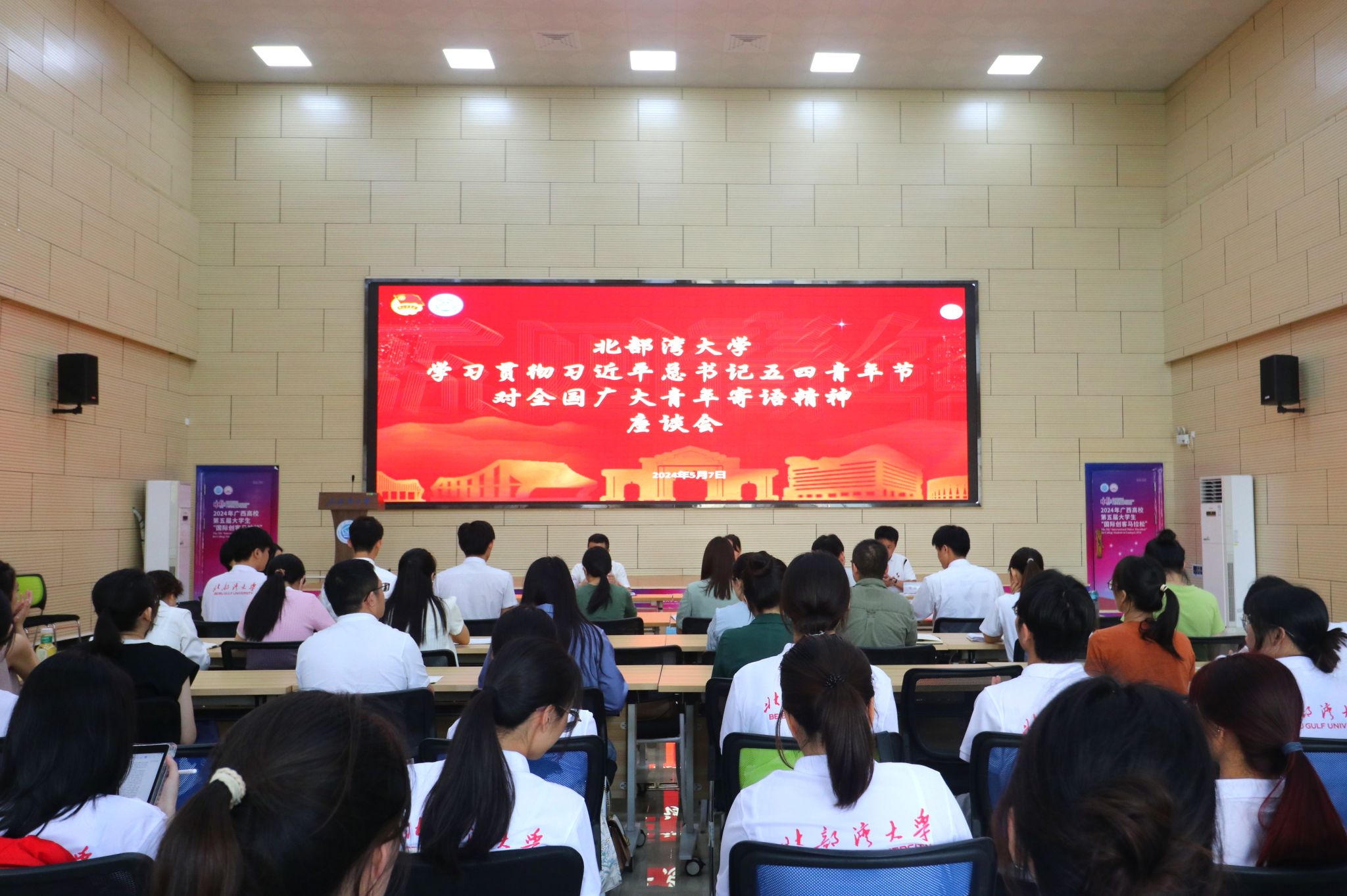 5月7日,beat365平台官方网站青年师生学习贯彻习近平总书记五四青年节对全国广大青年寄语精神座谈会在众创空间301报告厅举行。校党委副书记陈磊出席并讲话。