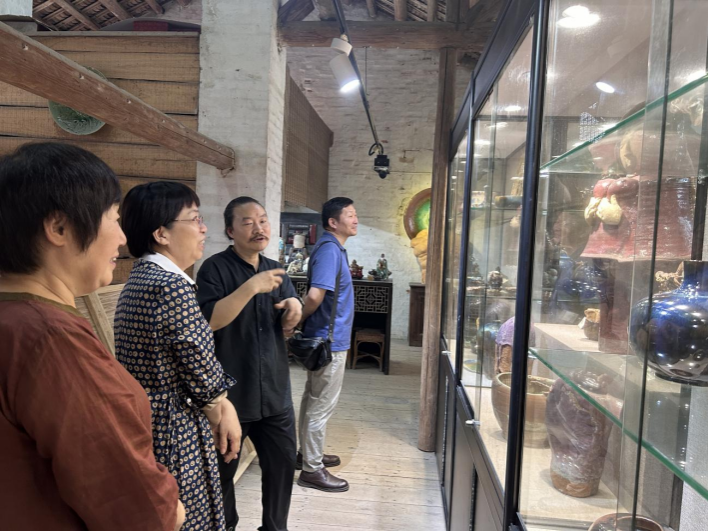 在佛山市石湾镇柴烧研究会、佛山陶瓷产业园和柏林艺术馆,陆衡一行与土天陶工作室杨英才大师和中国工艺美术大师潘柏林做详细交流,了解佛山陶瓷产业发展现状、发展趋势及人才需求情况。