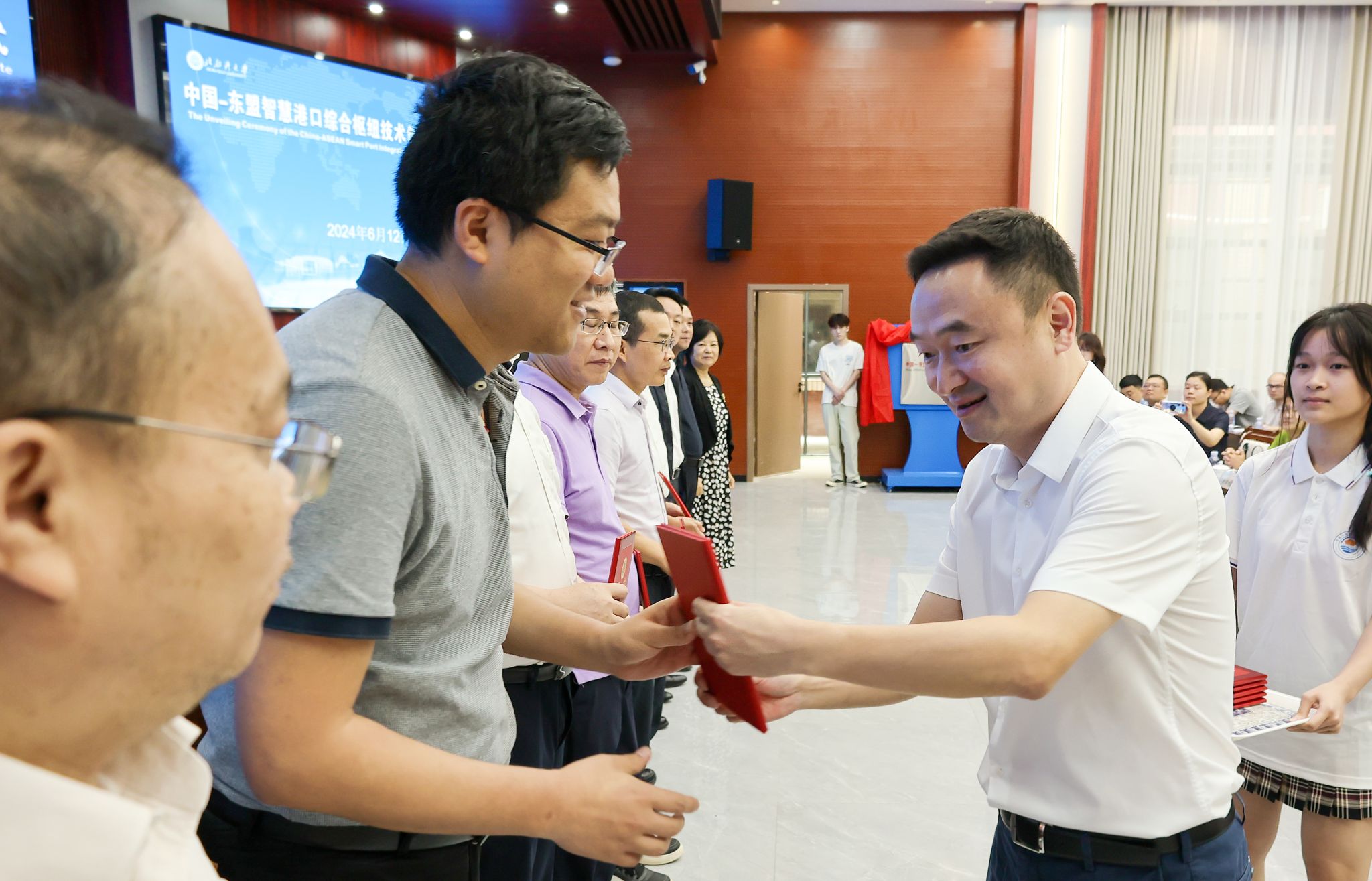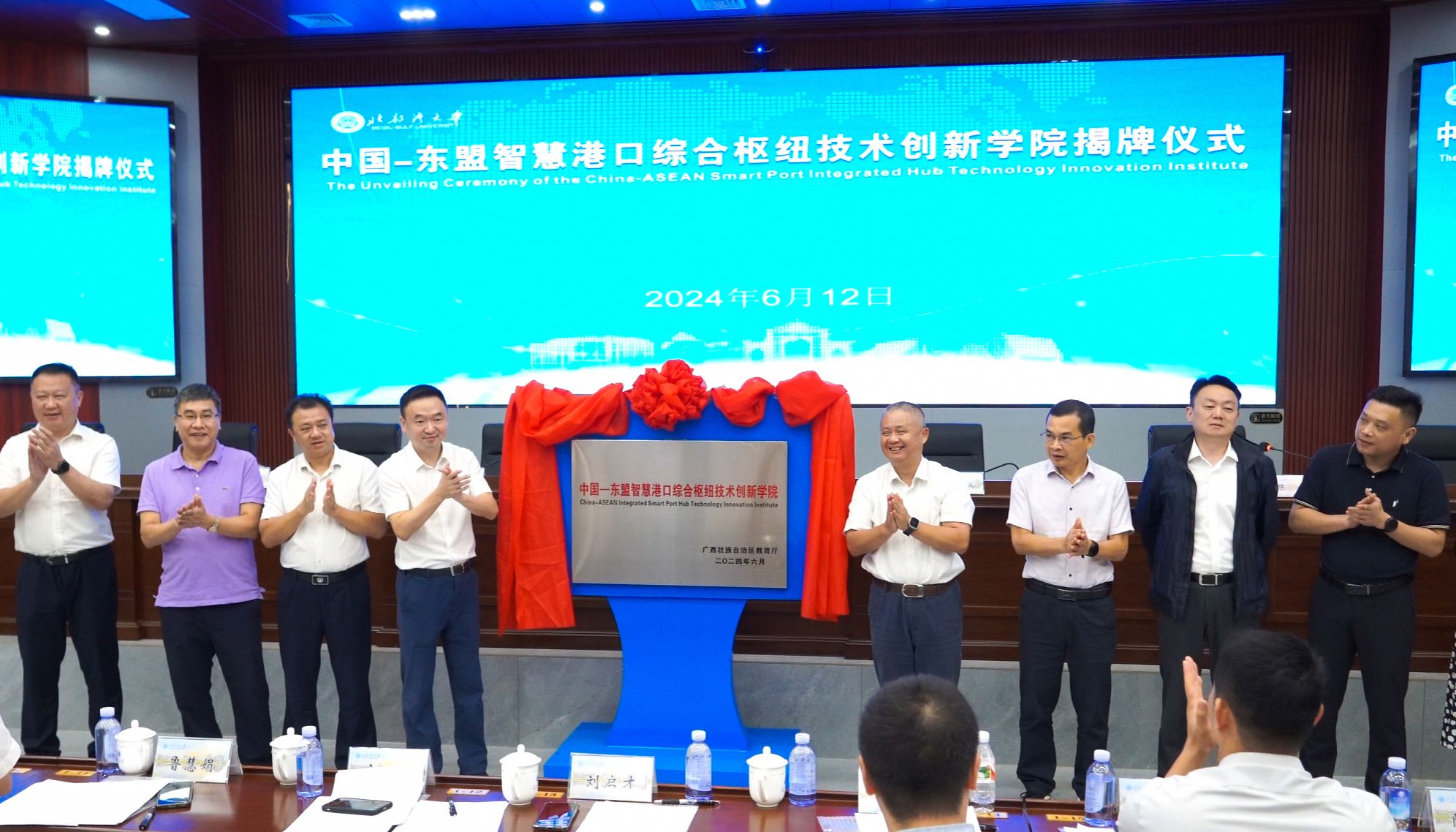 6月12日,“中国-东盟智慧港口综合枢纽技术创新学院揭牌仪式暨第一届理事会成立大会”在beat365官网办公楼一楼报告厅隆重举行。