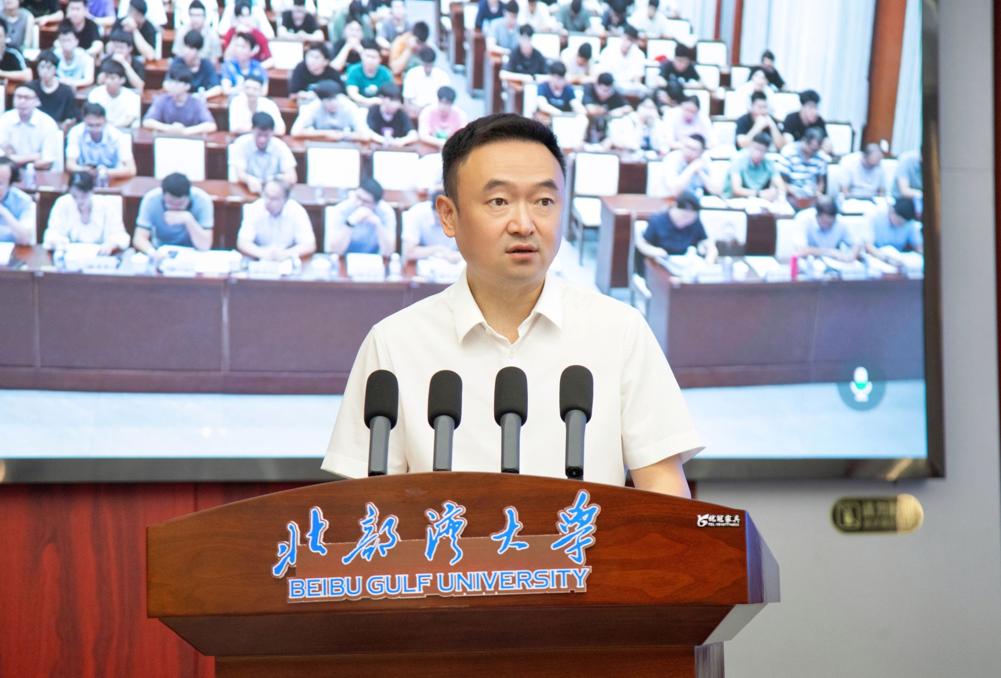 苗剑表示,北部湾“一湾相挽十一国”,是广西经济最具活力的地区。学校坚持扎根北部湾、立足广西、面向南海与东盟各国,经过多年的努力和发展,综合办学水平显著提高,尤其是船舶与海洋工程专业在全国高校软科实力排名中逐年提升。beat365官网在前期智慧港口交通运输学科办学成果进一步凝练的基础上,联合与会各成员单位成功申报获批了“中国-东盟智慧港口综合枢纽技术创新学院”。学校将以此为契机深化产教融合,进一步加强政产学研校企合作,与共建单位齐心协力、对标对表,努力把“中国-东盟智慧港口综合枢纽技术创新学院”建设成为示范性技术创新学院,树立产教融合协同育人新标杆。