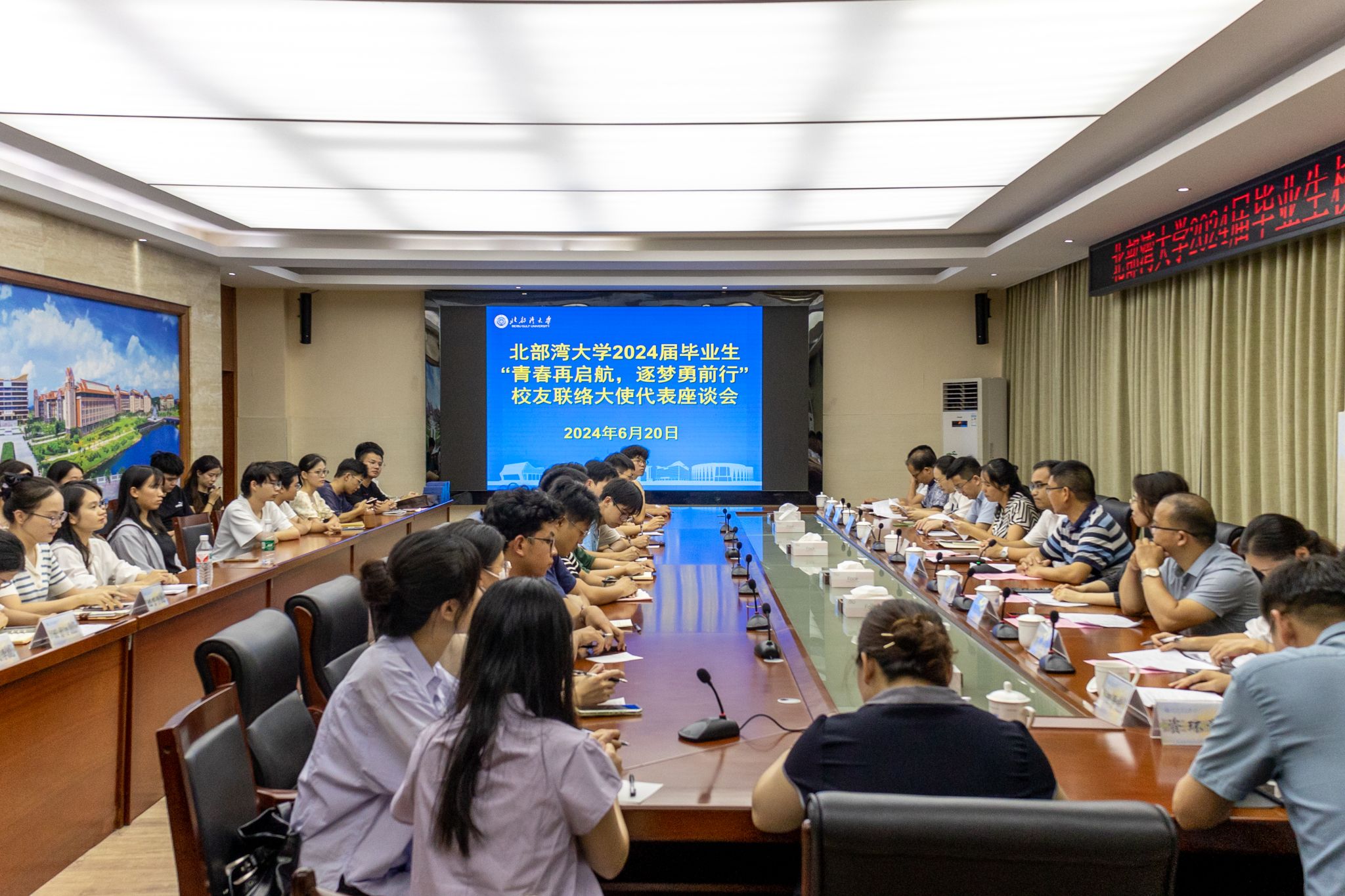 6月20日,beat365平台官方网站2024届“青春再启航 逐梦勇前行”校友联络大使代表座谈会在办公楼523会议室召开。学校党委常委、副校长马秀明出席会议并讲话。各学院分管学生工作和校友工作负责人、校友办和学生工作处、就业办工作人员、钦州校友之家和广州校友之家代表、各学院2024届校友联络大使代表参会。会议由校长助理、校友会会长任才茂主持。