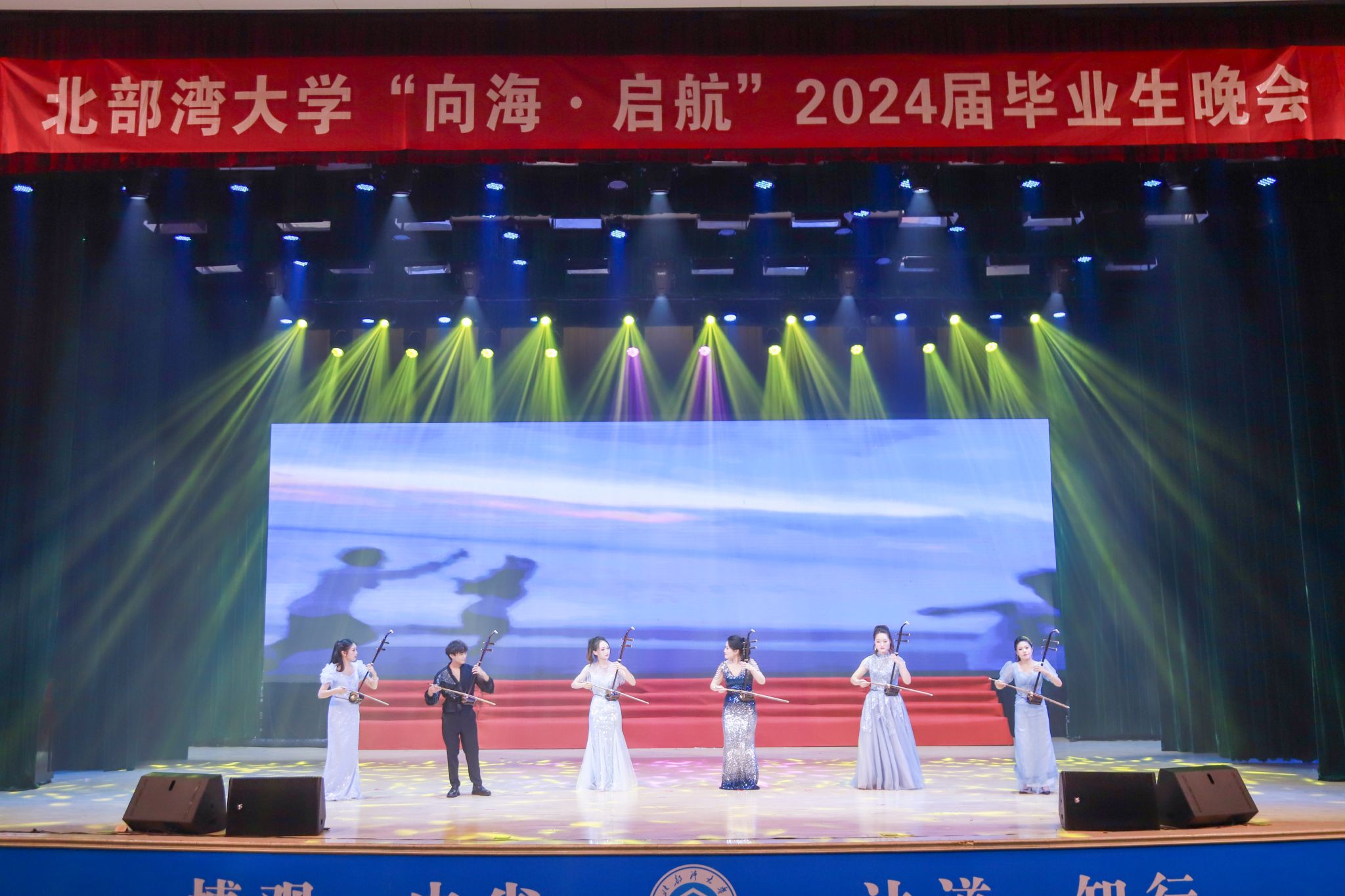 晚会开场,歌曲《想去海边》奏响湾大人心中的向海之志,民歌《云之南》则将广西的民族之美徐徐呈现,现场的气氛渐入佳境。当合唱《踏歌回故乡》奏响,毕业晚会正式拉开帷幕。