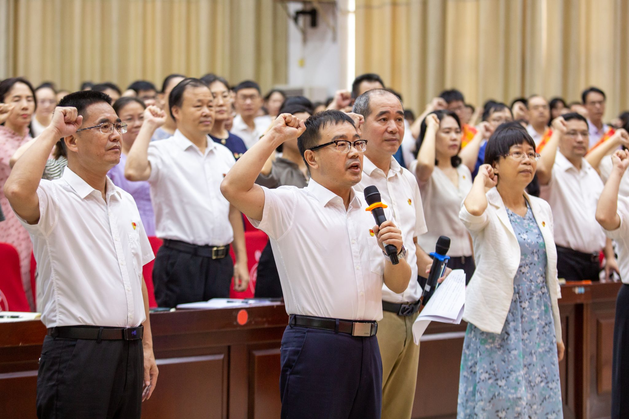 在一片庄严的气氛中,学校党委书记徐华蕊带领在场党员面向党旗庄严宣誓,并一同重温入党誓词,表达对党的忠诚与信仰。