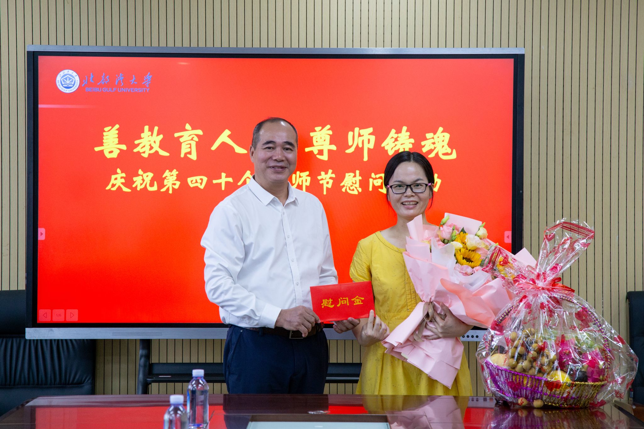 天朗气清,秋风习习。近日,校领导徐华蕊、苗剑、唐高华、陈磊、梁智、谢立平、陆衡、马秀明、陈丹、闫松银、尹艳镇分别走访慰问一线教师代表,为他们送上诚挚的祝福并通过他们向全校教职工致以节日问候。