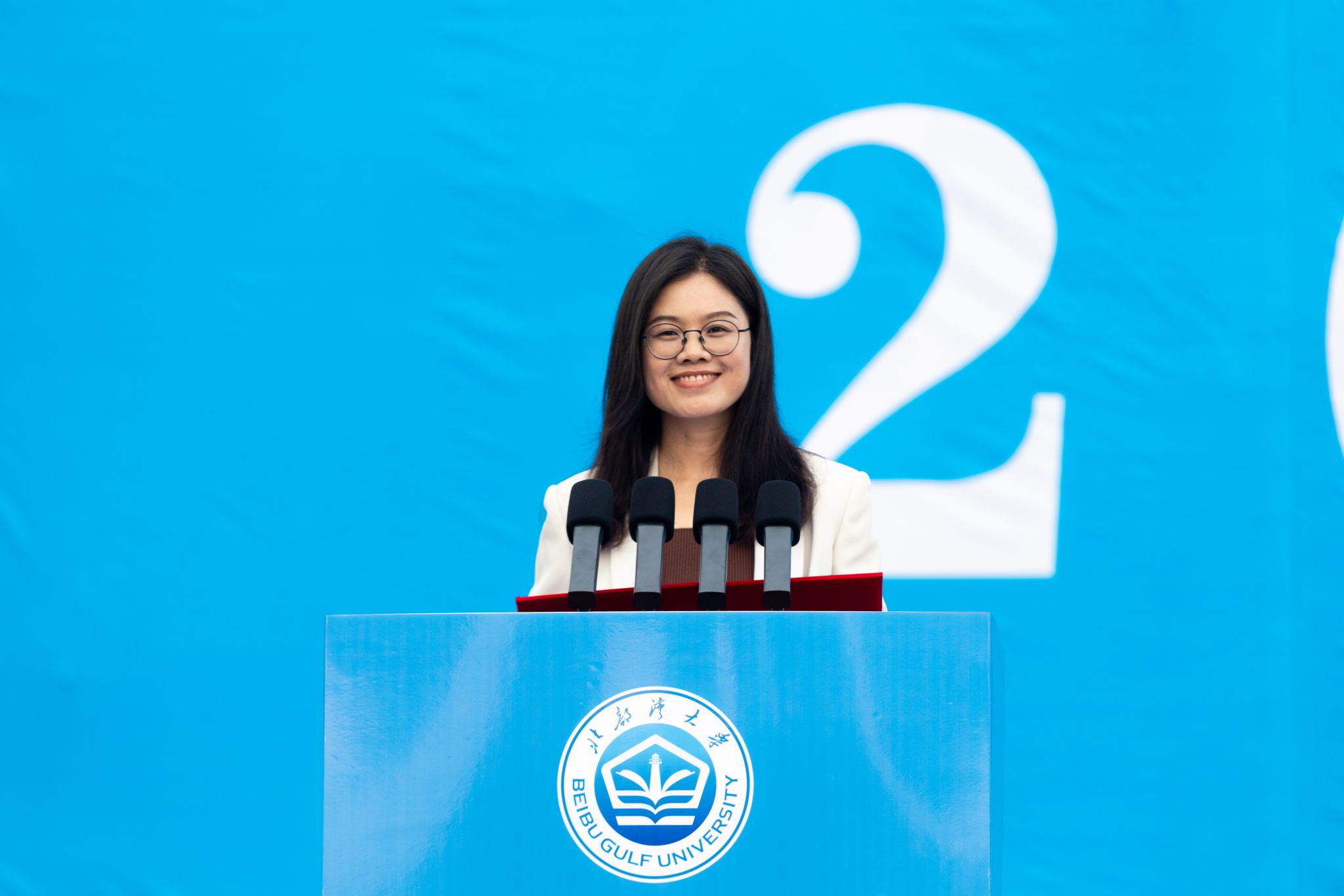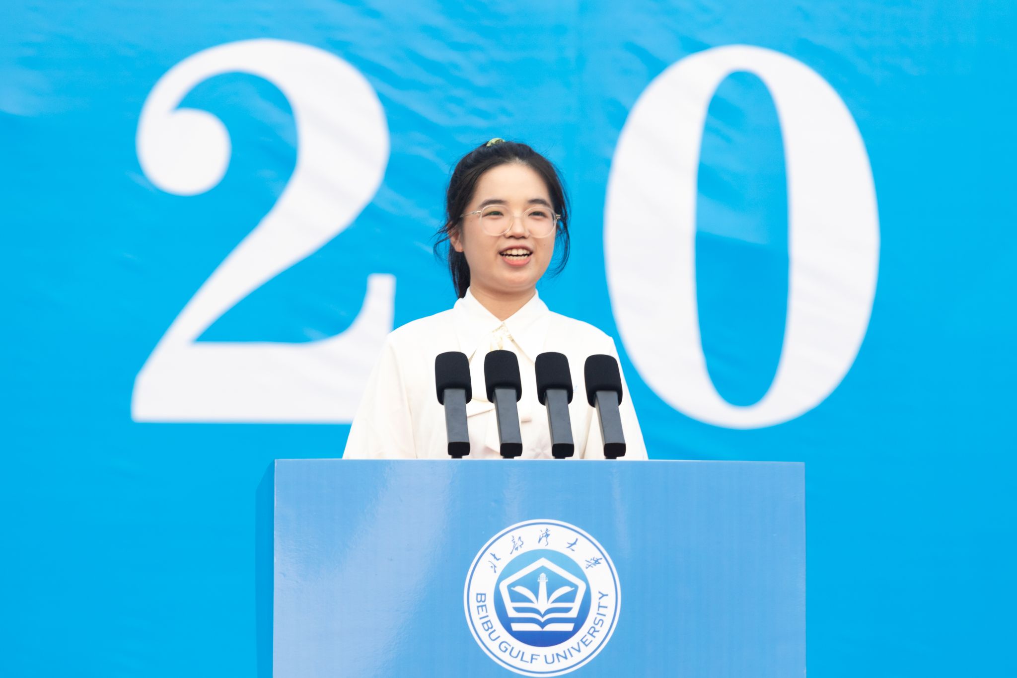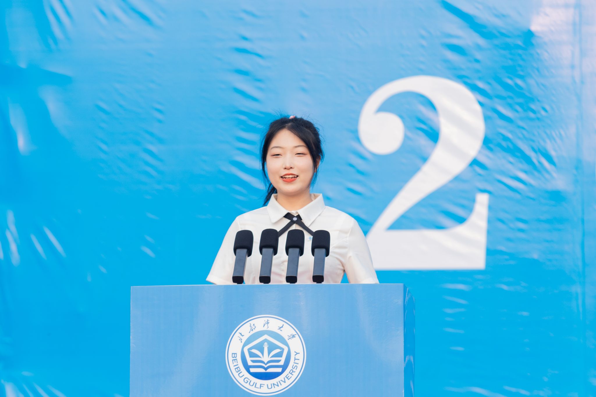 本科新生代表、人文学院汉语言文学专业马韶彤表示将遵从湾大校训、秉持“三敢精神”特质,涵养海的胸怀、滋养海的精神、培养海的志向。研究生新生代表、机械与船舶海洋工程学院机械专业研究生万秋予表示将投身海洋事业,以实际行动践行“海洋强国”的时代使命,共绘“筑梦海洋”的宏伟蓝图。高年级学生代表、经济管理学院国际经济与贸易专业何欣雨分享了大学的收获和感悟,鼓励学弟学妹们勇于追梦、敢于挑战,绽放属于自己的青春光彩。
