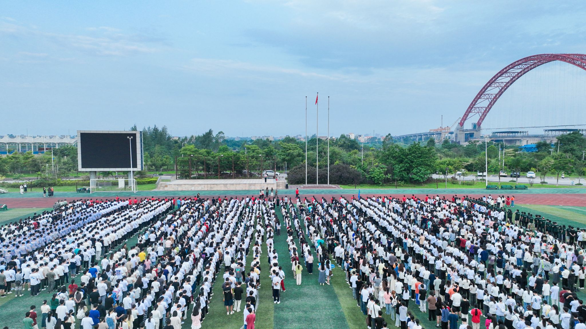 “我和我的祖国,一刻也不能分割……”在五星红旗下,在场全体师生共唱《我和我的祖国》,歌声悠扬响彻校园,表达对祖国的深情祝福。师生们纷纷表示,国旗下民族自豪感和爱国情怀油然而生,将以更加饱满的热情和更坚定的信念,为新时代强国建设贡献湾大力量,共谱盛世华章。(吴佳潞 韦巧丽 摄)