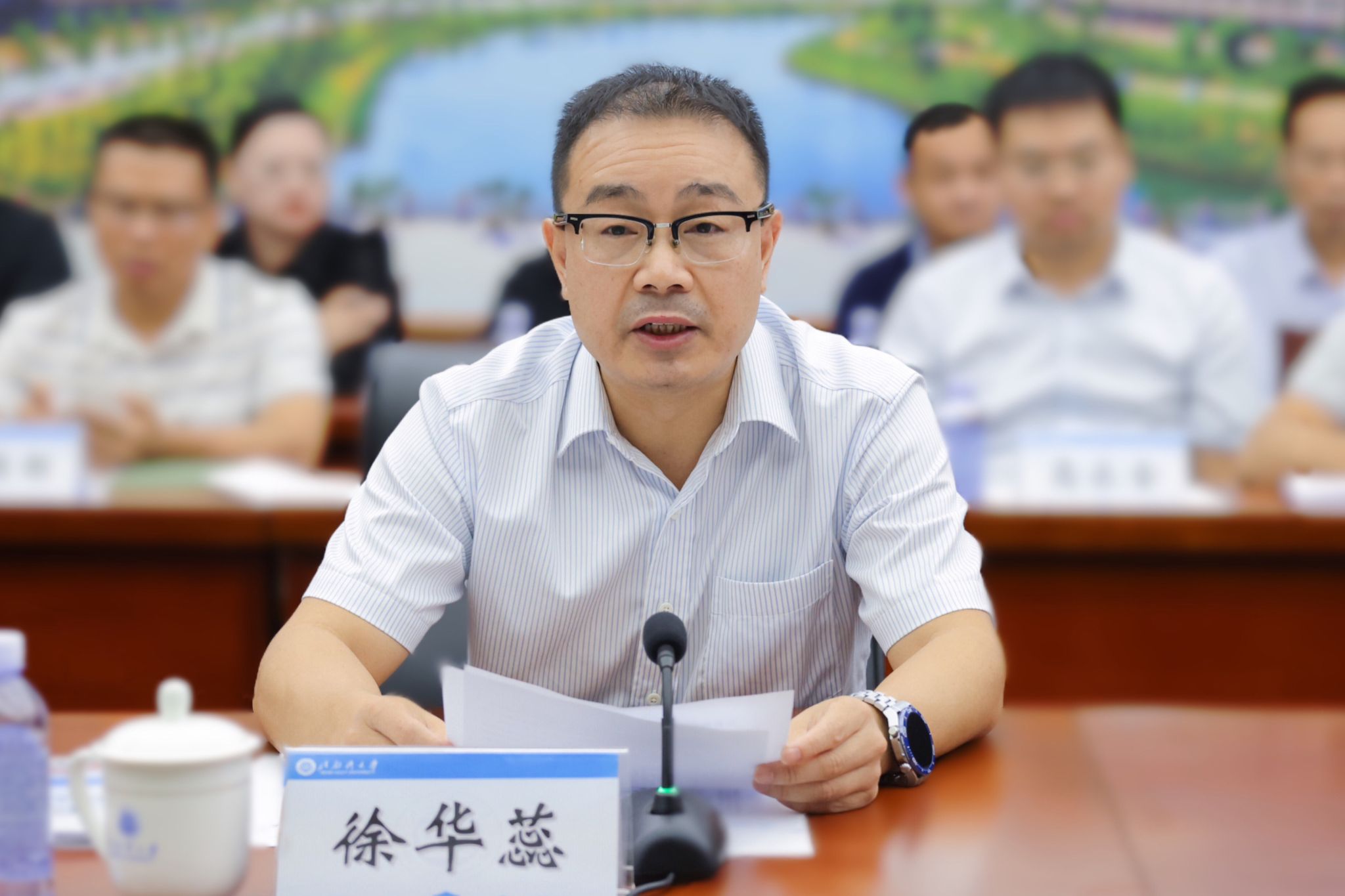 10日上午,现场考查见面会在办公楼523会议室举行。广西教育研究院院长谢凌凌、副院长黄玉强,学校领导徐华蕊、陈磊、梁智、谢立平、陆衡、陈丹、闫松银、尹艳镇,相关职能部门、学院负责人参加见面会。会议由专家组组长叶忠主持。