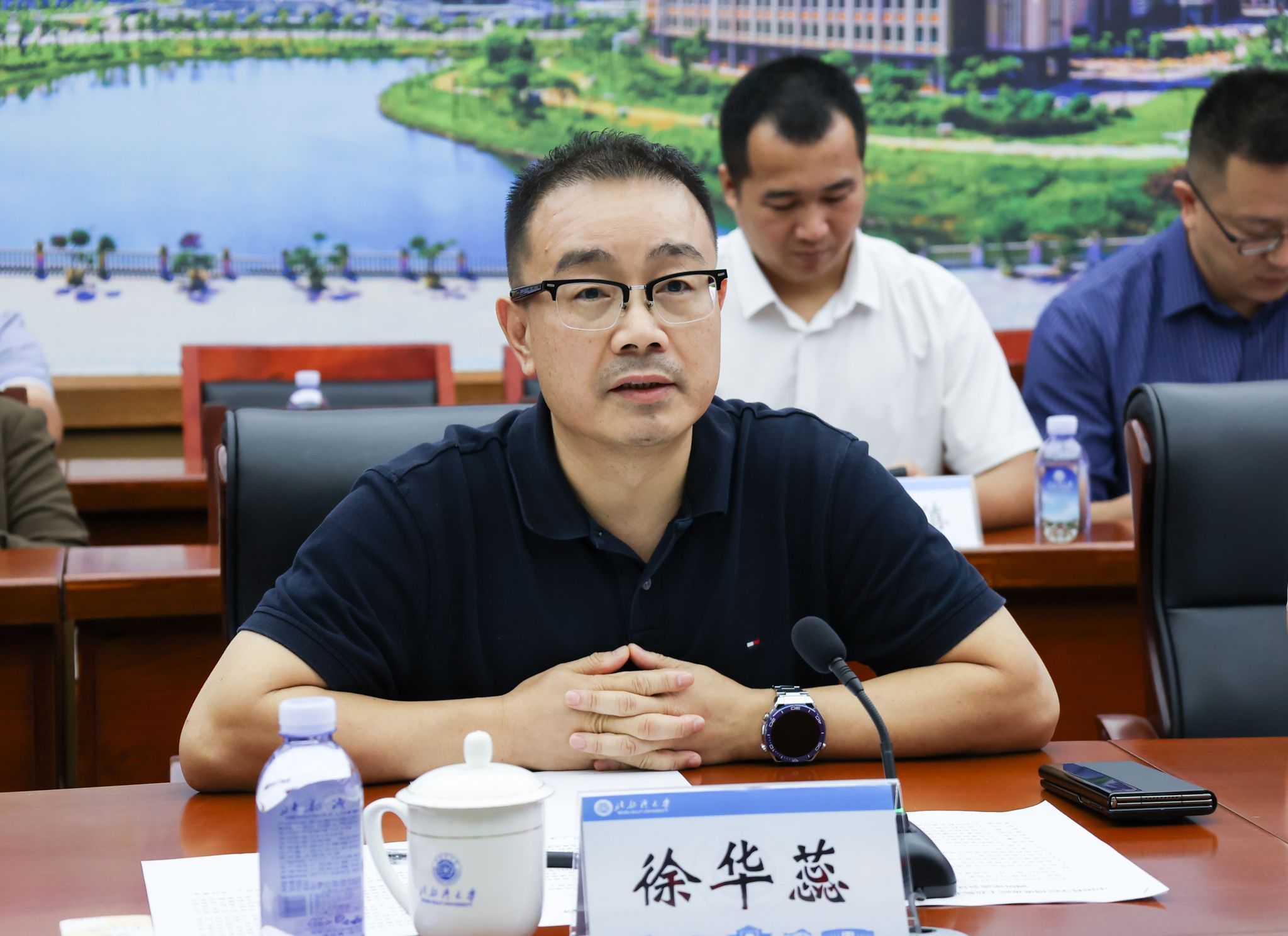 徐华蕊热烈欢迎周成虎院士一行来校调研指导。他表示,学校在海洋科学、红树林保护、海洋环境变化监测、海洋地理测绘等研究领域逐步形成了与区域经济社会相适应的发展格局。他希望以此次调研为契机,进一步加强与国内外高水平科研机构的合作交流,不断提高学校科技创新水平以及社会服务能力。