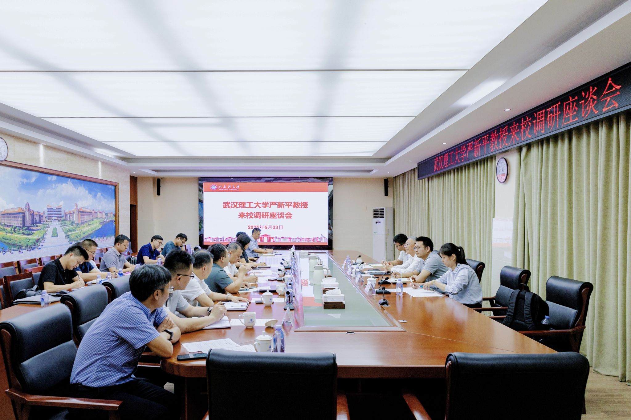 5月23日,武汉理工大学学术委员会主任、水路交通控制全国重点实验室主任严新平教授一行到访beat365官网。校党委书记徐华蕊,党委副书记、校长苗剑,校党委常委、副校长陈丹、闫松银热情接待。