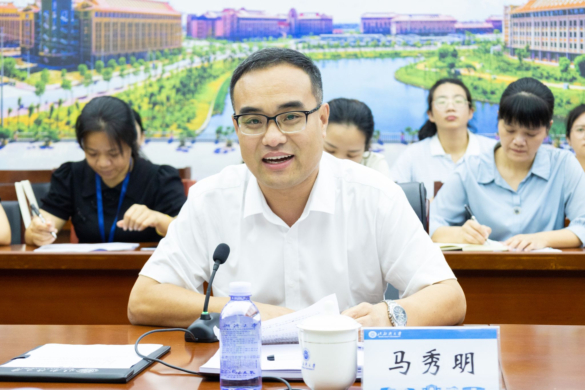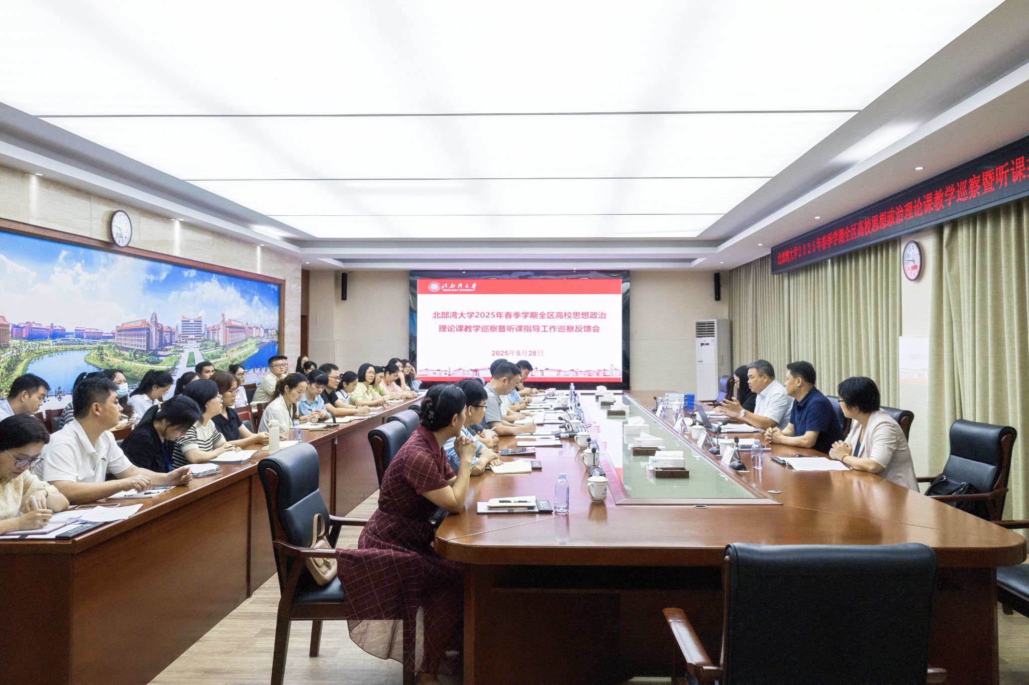5月28日,以广西民族大学党委副书记陈铭彬教授为组长的全区高校思想政治理论课教学巡察组一行4人,到beat365官网开展2025年全区高校思想政治理论课教学巡察和听课指导工作。学校党委副书记、校长苗剑,党委常委、副校长马秀明,相关职能部门负责人,马克思主义学院全体教师以及辅导员代表参加在办公楼523会议室召开的专题汇报会和反馈会。马秀明主持会议。
