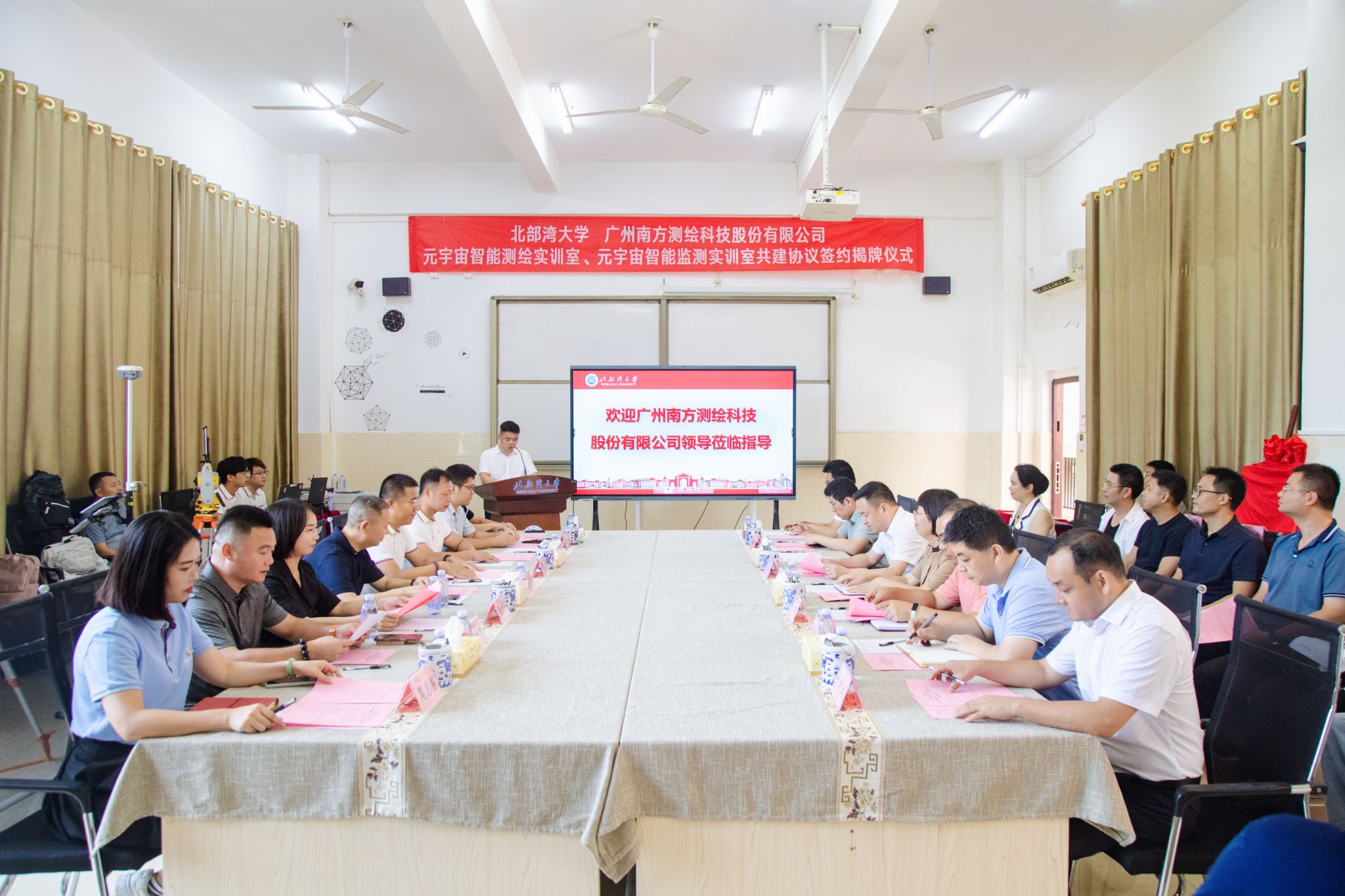 6月10日下午,学校与广州南方测绘科技股份有限公司在13号教学楼资源与环境学院104室举行元宇宙智能测绘实训室、元宇宙智能监测实训室共建协议签约暨揭牌仪式,开启产教融合新篇章。