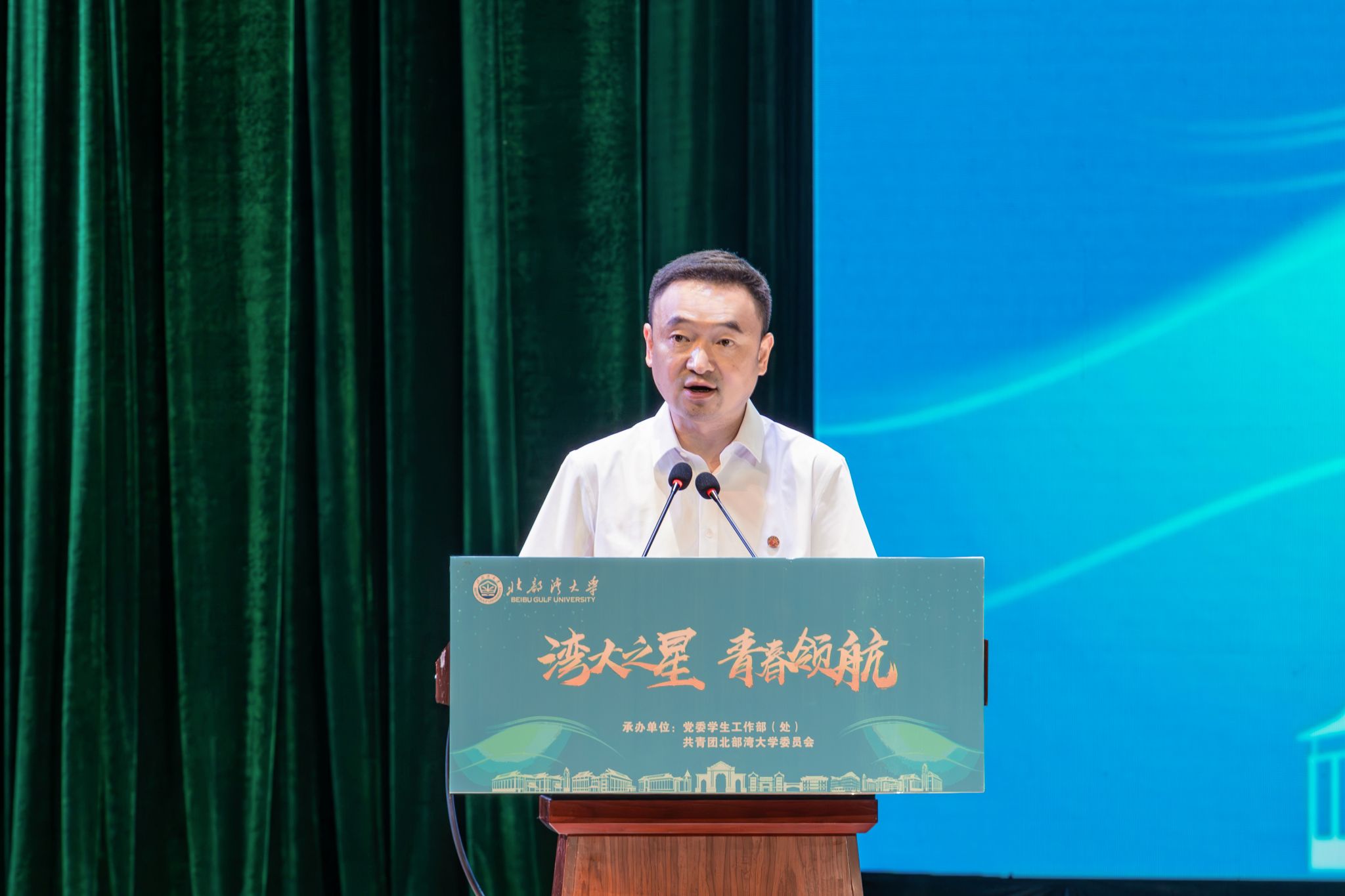 苗剑代表学校向受到表彰的优秀学子表示祝贺,赞扬他们在学习与实践中展现了湾大青年在时代浪潮中勇立潮头的卓越风采,并向辛勤培育学生成长的老师致以敬意。他对全体学生提出了四点希望:一是励志勤学,夯实青春成长的基石。要紧跟时代发展步伐,以“十年磨一剑”的定力深耕专业,以“敢为天下先”的热忱探索新知,努力将课堂所学转化为创新实践,推动科研成果从实验室走向生产线,让专业学习与实践创新同频共振,真正筑牢青春成长的根基,在时代浪潮中站稳脚跟。二是奉献向善,擦亮青春最美的底色。要主动将个人理想融入家国情怀,走出“小我”的局限,在志愿服务、公益实践中实现“大我”的升华,用善意温暖他人、以行动服务社会,让奉献成为青春最亮丽的底色。三是奋勇争先,砥砺青春应有的姿态。要以“弄潮儿向涛头立”的胆识拥抱变革,以“越是艰险越向前”的锐气开拓创新,锚定科技前沿和国家需求,以奋勇争先的锐气钻研核心技术,以舍我其谁的担当投身战略实践,在服务国家发展大局中彰显青春力量。四是勇立潮头,争做青春逐梦的勇者。要以“逢山开路、遇水架桥”的无畏勇气直面挑战,以“千磨万击还坚劲”的坚定意志冲破迷雾,将个人理想融入时代洪流,用实干担当书写青春华章,让青春在追逐梦想、服务家国的征程中绽放最耀眼的光芒,努力成长为学校的荣光、国家的栋梁、时代的骄傲。
