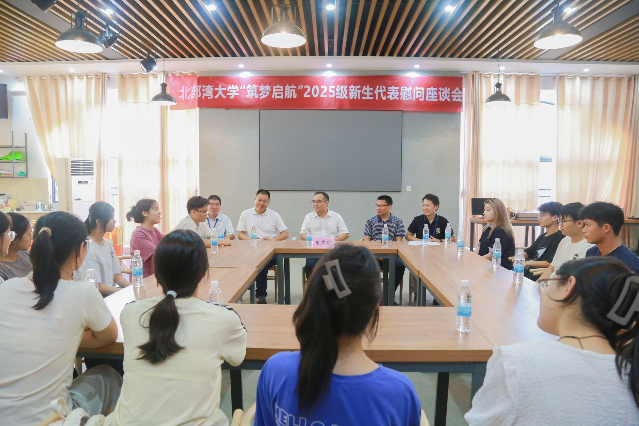 校党委常委、副校长马秀明带队深入迎新现场走访慰问。在报到点,向新生及家长表示热烈欢迎并亲切交流,详细了解新生注册、住宿安排及入学教育等工作的进展情况,感谢所有参与迎新工作师生的辛勤付出。在新生代表慰问座谈会上,与新生面对面交流,倾听新生心声,为他们答疑解惑,并希望同学们尽快适应新环境,融入湾大生活,不负韶华,学有所成、学有所获、学有所用,拥有充实而精彩的大学生活。