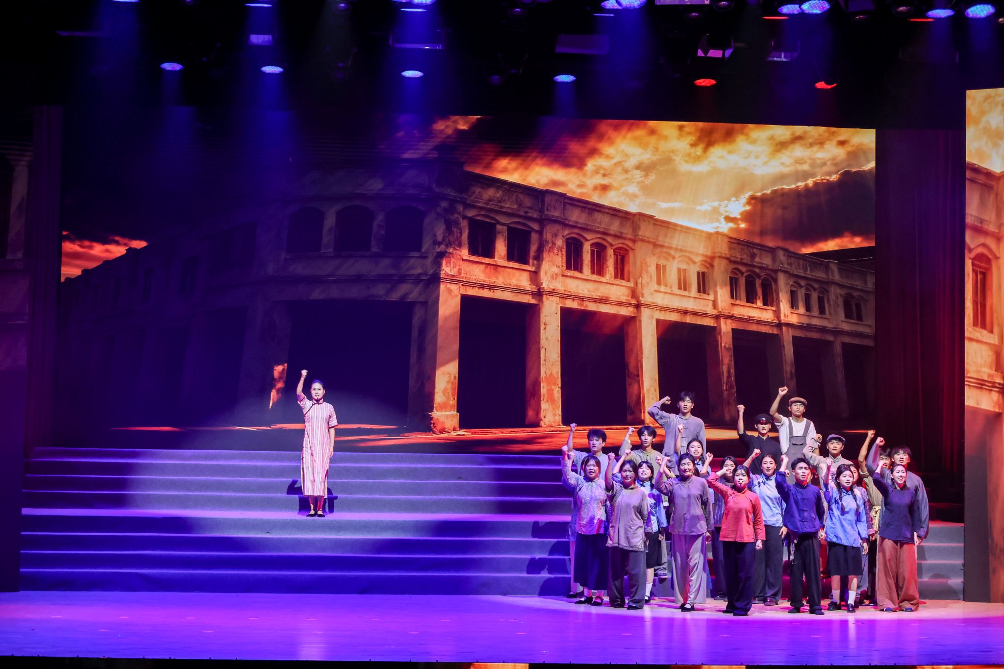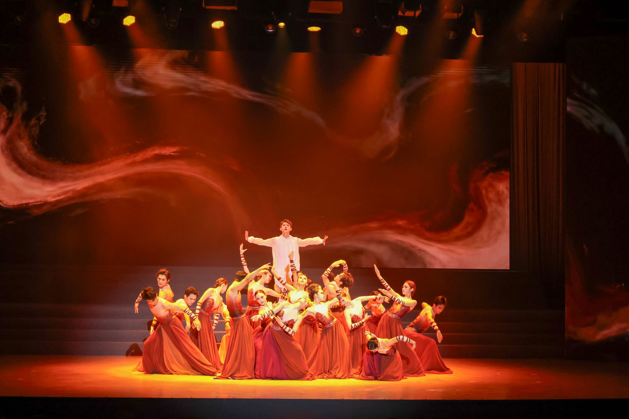 晚会分为《刘冯精神耀千秋》《革命火种播钦廉》《爱国拥军谱新篇》三个篇章。其中,beat365官网音乐舞蹈学院师生主创或参演了开场歌舞《当那一天来临》等6个节目。铿锵激昂的歌声伴随富有力量的舞蹈,歌舞《当那一天来临》拉开了晚会序幕。舞蹈《塑泥·塑我》通过极具艺术性的优美舞姿展现坭兴陶奇妙的“塑造”之旅,诠释了在岁月砥砺下铸就坚韧灵魂的强大信念。情景剧《血色丰碑》以刚劲肢体与深情演绎,带观众重回战火年代——硝烟场景、舍生抗争、不屈信仰直击人心。合唱伴舞《假如战争今天爆发》展现了青年学子昂扬向上的精神风貌,彰显了中国人民捍卫和平和正义的必胜决心。歌舞《爱我人民爱我军》中动情的歌声唱出军民鱼水深情,激发了全场爱国拥军情怀。晚会在饱含着全场观众对祖国母亲深切热爱与美好祝福的《歌唱祖国》歌声中落下帷幕。