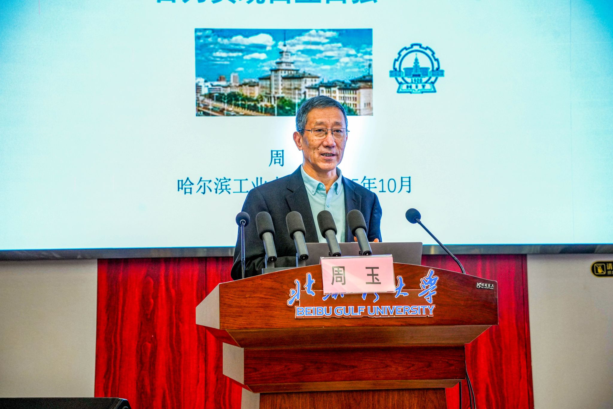 周玉在题为《大力弘扬科学家精神,奋力实现自立自强》的报告中,以钱学森、邓稼先、师昌绪等老一辈科学家的感人事迹为引,结合陶瓷材料在航天领域的创新应用及哈尔滨工业大学小卫星研发等重要成果,生动阐释了以爱国、创新、求实、奉献、协同、育人为核心的科学家精神。他还分享了自身在材料学科的研究实践,强调了科技自立自强与关键技术自主可控的重要意义。