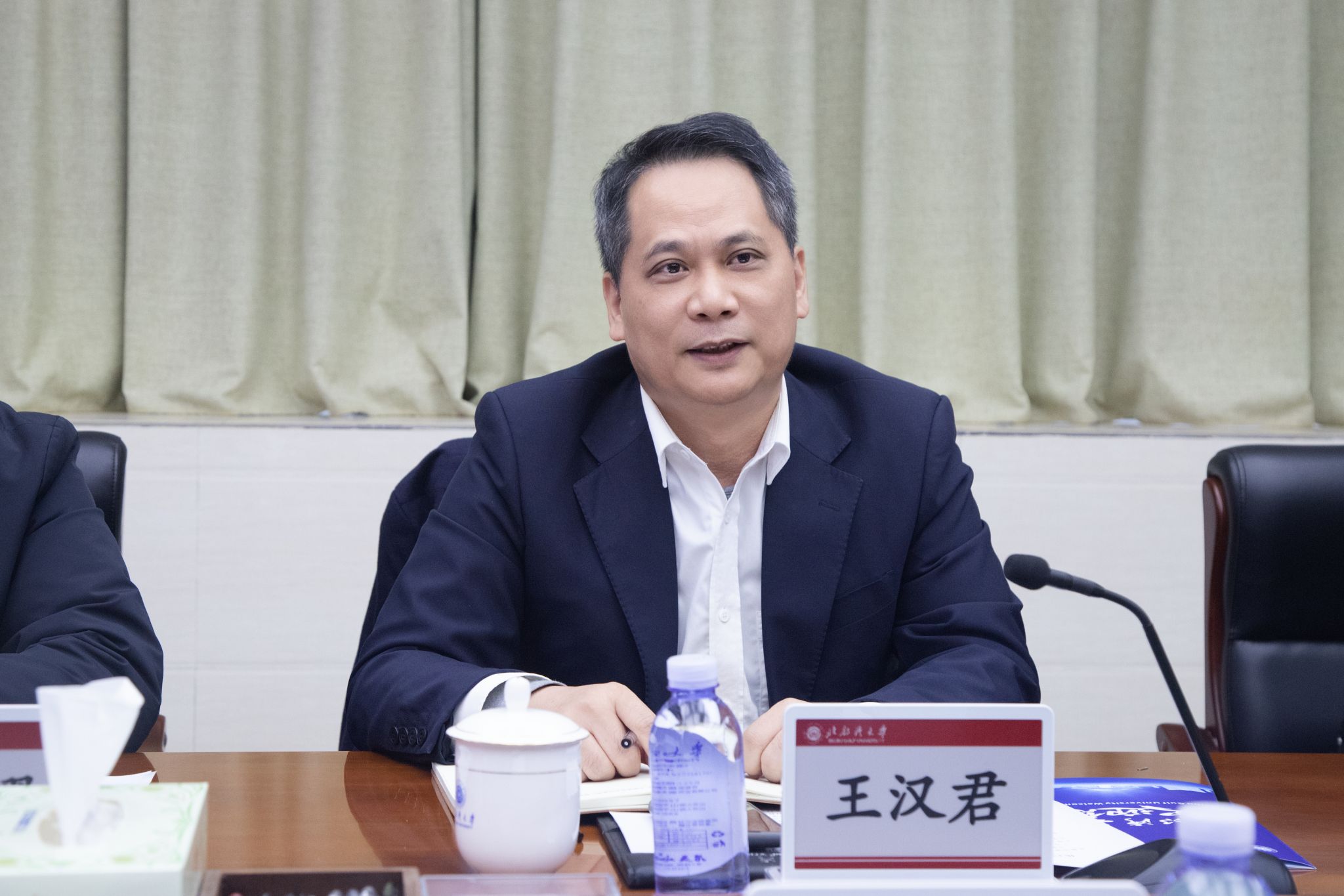 苗剑热烈欢迎王汉君一行的来访。他表示,学校在石油化工、新能源材料等领域积累了丰富的研究成果。此次合作是学校深化产教融合、服务地方经济社会发展的重要举措,希望双方以平台为依托,充分发挥各自优势,精准破解产业技术瓶颈,携手打造北部湾地区化工新材料产业服务新高地。
