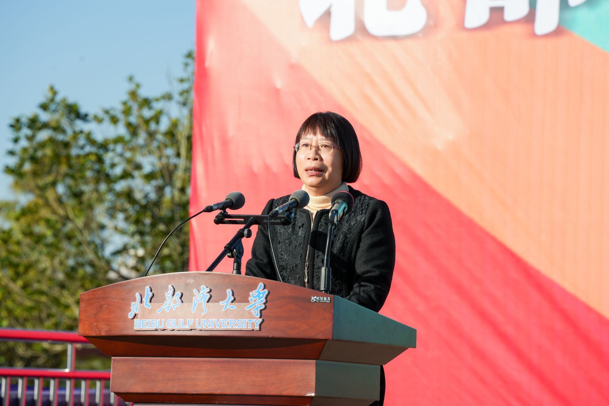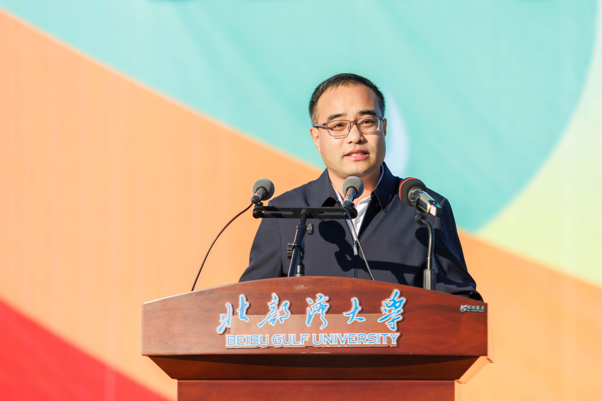 马秀明在致辞中代表学校向全体运动员、裁判员和工作人员致以亲切问候与衷心感谢。他表示,近年来,学校深入贯彻落实习近平总书记关于体育的重要论述,将体育育人作为落实立德树人根本任务、推动学校全面深化改革和高质量发展的重要内容,锚定“健康第一”的方向,筑牢“五育并举”体育根基,深化体教融合,发挥体育育人功能,在各级体育竞赛中屡获佳绩。他希望参赛师生发扬“更快、更高、更强——更团结”的奥林匹克精神,勇于挑战、锐意进取,赛出风格,赛出水平,为培养德智体美劳全面发展的社会主义建设者和接班人以及建设海洋特色鲜明的高水平应用型大学注入奋进力量。