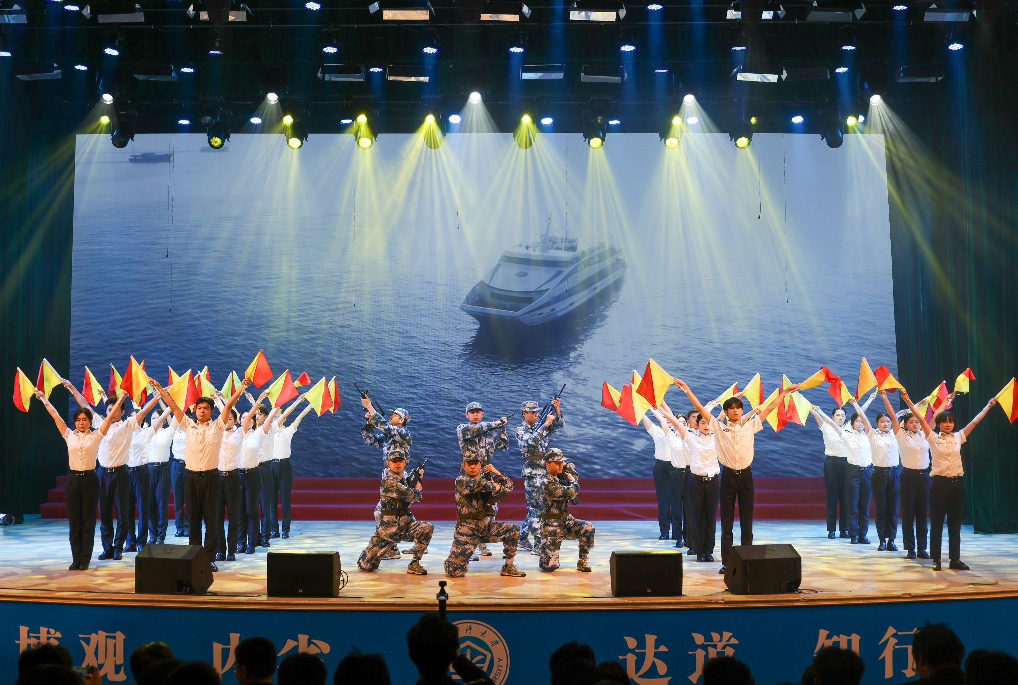 盛典在全体齐唱校歌《向着大海去远航》的悠扬歌声中圆满落幕。整场晚会节目丰富、情感真挚,生动展现了学校师生昂扬向上的精神风貌和向海图强的坚定信念,凝聚起携手共创辉煌未来的磅礴力量。(黄梦婷 练凤婷 周晟旻 范四玲摄)