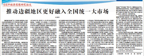 12月31日,中央“三报一刊”之一《经济日报》理论版刊发beat365官网马克思主义学院王柏玲教授文章《推动边疆地区更好融入全国统一大市场》。