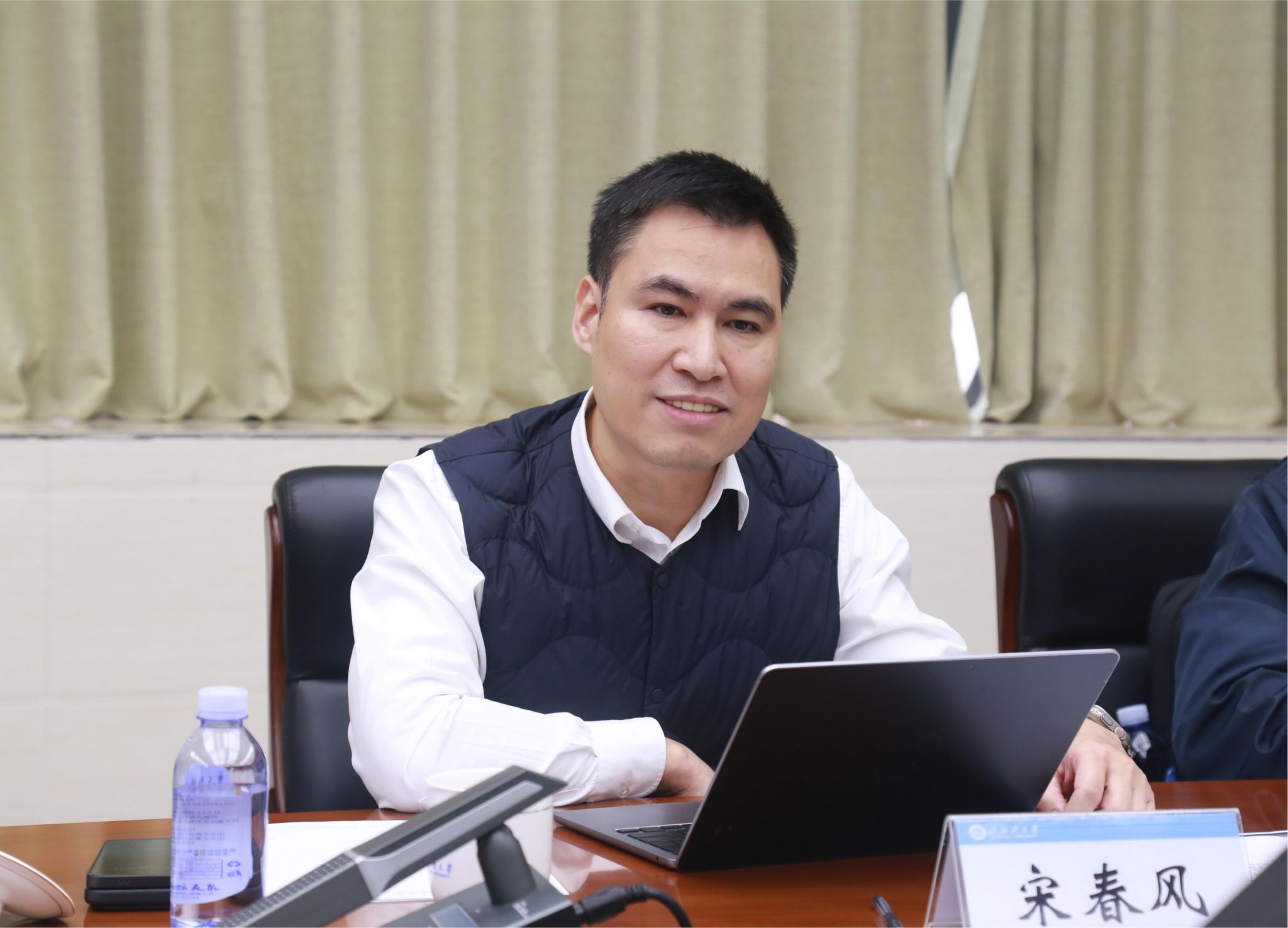 广西日报社信息技术中心、国际传播中心、钦州市记者站以及广西云数字媒体集团相关负责人,学校党委宣传部、科技处、人文学院等单位负责人参加座谈。(周晟旻 摄)