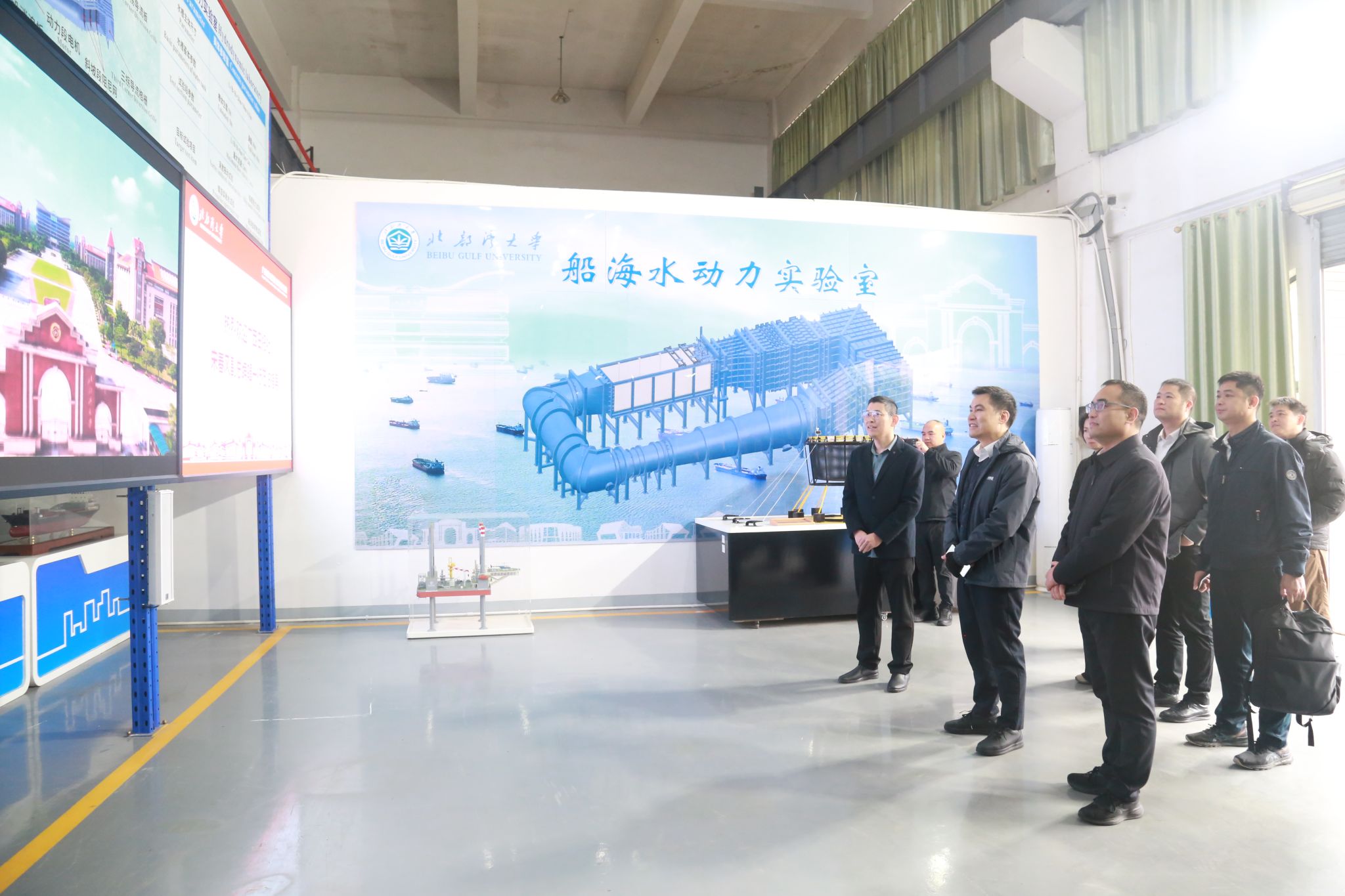广西日报社副总编辑宋春风一行在机械与船舶海洋工程学院船海水动力实验室实地考察