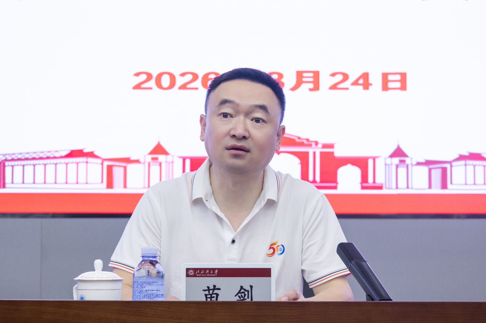 3月24日,学校在办公楼一楼报告厅召开2026年全面从严治党暨“清廉湾大”建设提质增效工作会议。校党委书记、校长苗剑出席会议并讲话。全体在家校领导出席会议。