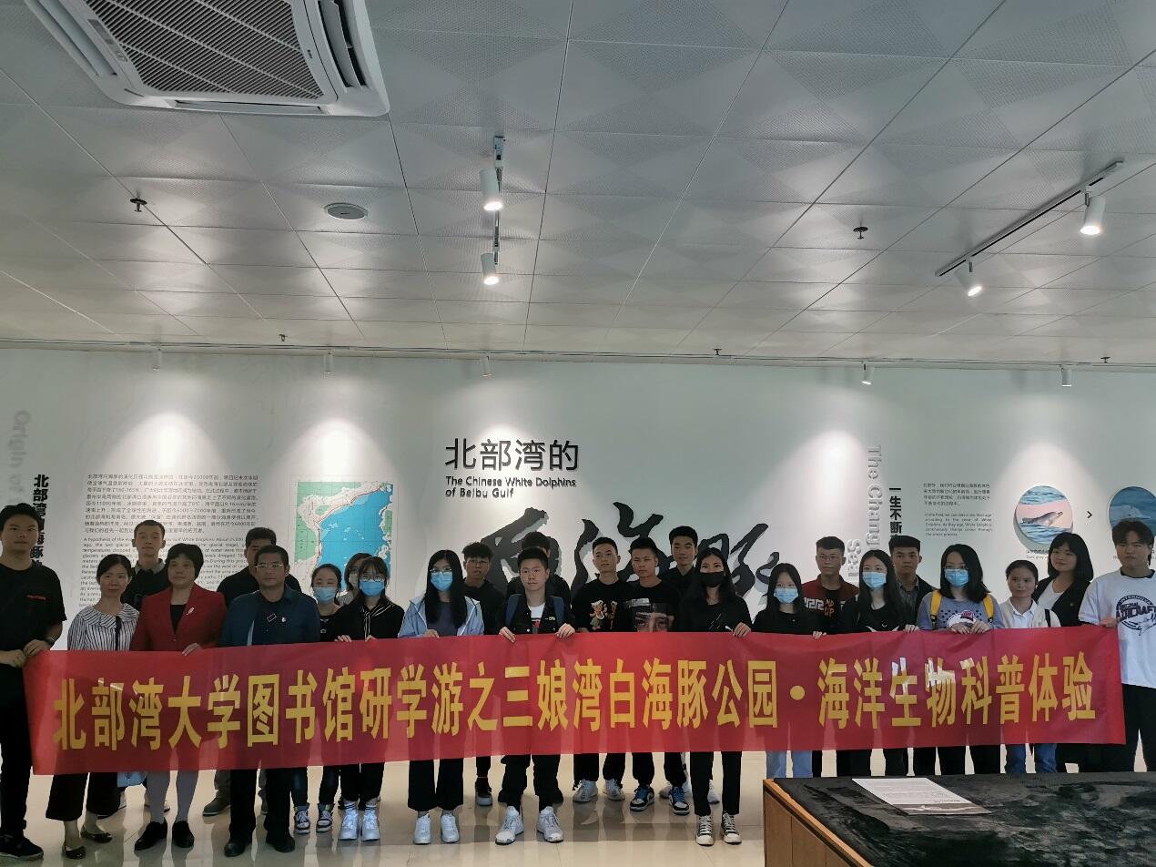 近日,beat365平台官方网站图书馆与钦州市图书馆联合组织学生、社会读者等,走进三娘湾白海豚公园海洋生物科普体验馆,开展“逐浪北部湾·探索白海豚”研学游活动。