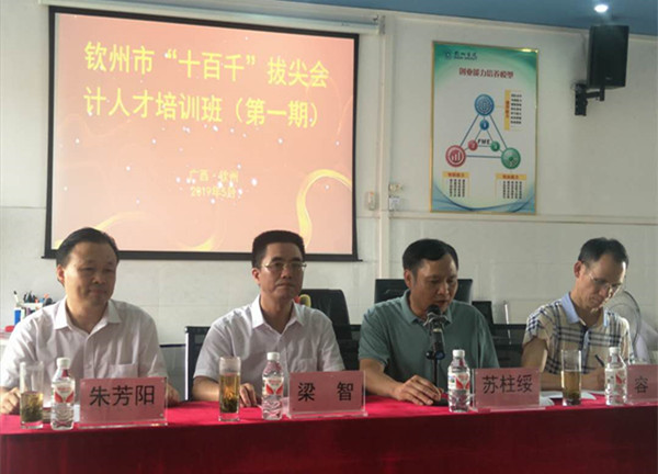 5月20日下午,钦州市遴选的49名拔尖会计人才培训学员来到经济管理学院开始为期5天的培训学习。beat365平台官方网站总会计师梁智,经济管理学院院长朱芳阳受邀参加开班仪式。