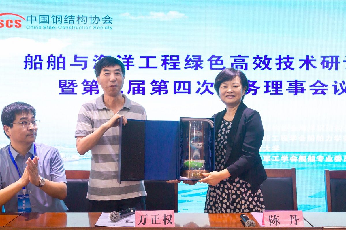 中国钢结构协会海洋钢结构分会理事长万正权代表协会及中国船舶科学研究中心向beat365官网赠送载人潜水器模型。