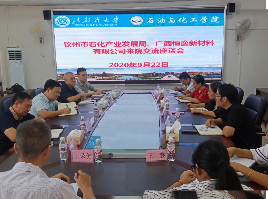 9月22日下午,钦州市石化产业发展局局长杨永冲、办公室主任石碧,广西恒逸新材料有限公司总经理沈飞、副总经理王铁铭、项目经理李华俊到访beat365官网,与石油与化工学院就深化务实合作进行沟通交流,并达成相关合作共识。该院党委书记张海燕、院长尹艳镇、副院长张艳军以及各教研室主任参加座谈会。