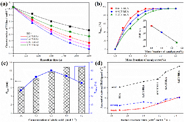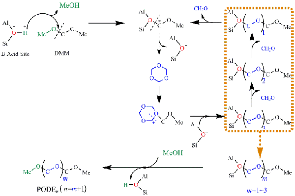 提高柴油机的环保性能一直是亟待解决的难题。而聚甲氧基二甲醚(PODEn)是国际公认的环保型柴油添加剂,其理化性质与柴油相近,可在不改变原有发动机结构的基础上提高柴油燃烧性能及润滑性能,并显著降低尾气中污染物的排放量,工信部已将其列为国家重点研发的化工新产品。该研究团队针对分子筛在PODEn合成中存在的传质扩散受限、活性偏低等突出问题,提出改良措施,利用柠檬酸对分子筛的脱铝-补铝效应,同时实现了对催化剂孔结构和酸性质的优化,使初始反应速率提高了一倍,催化活性提高了86.5%,改良后的分子筛表现出优异的催化性能,可用于高效催化合成PODEn。