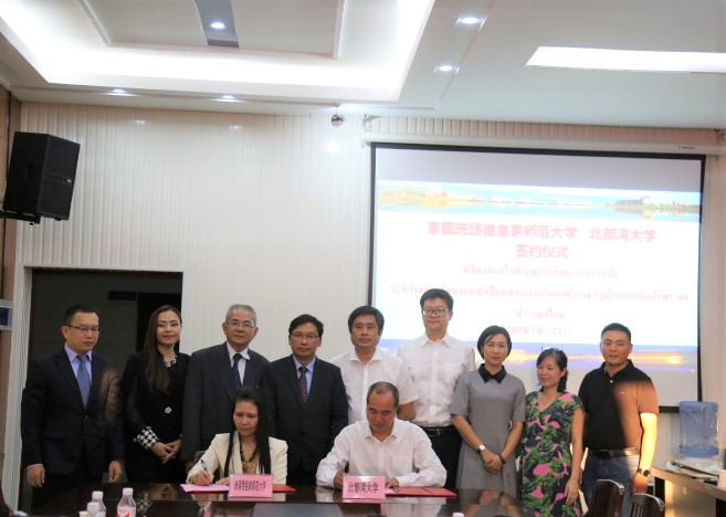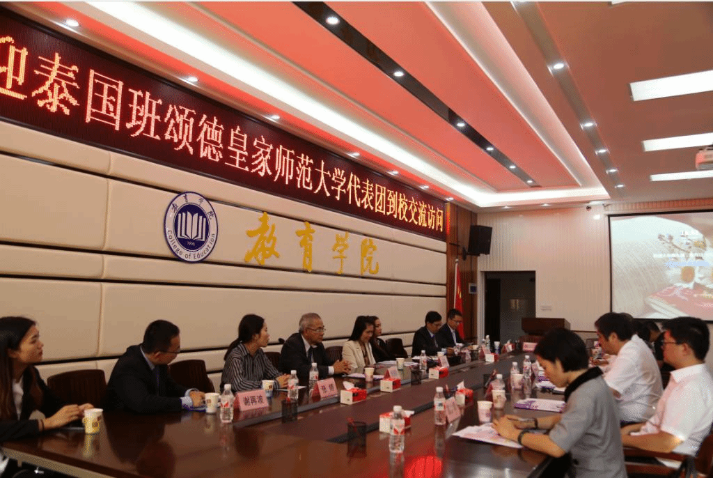 泰国班颂德皇家师范大学副校长灿拉达·蓬帕塔纳娜育天一行7人9月21日下午到访beat365官网,双方在教育学院1A-412会议室洽谈合作并签署了合作协议。