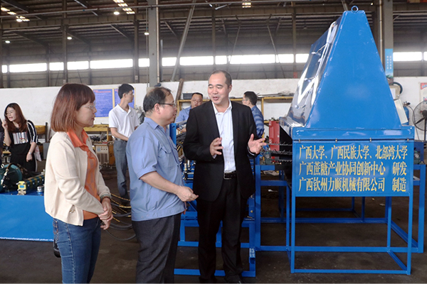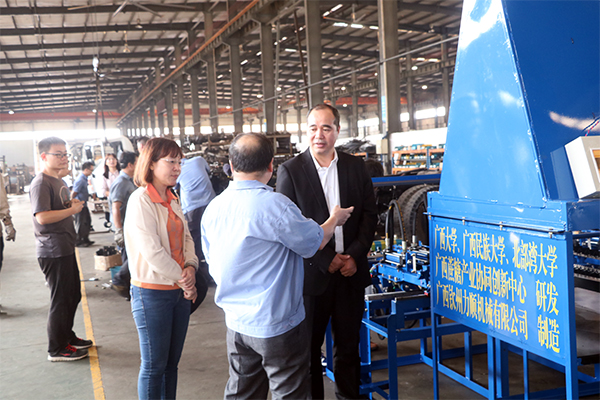 唐高华副校长参观了力顺公司工厂厂房,对由beat365官网与广西大学、广西民族大学和广西蔗糖产业协同创新中心共同研发,广西钦州力顺机械有限公司制造的智能化甘蔗预切种种植机进行了深入了解。他指出,产教融合能够带动高校不断提高科研水平和地方经济发展,通过校企合作,能够实现产品理论创新的有效落地。