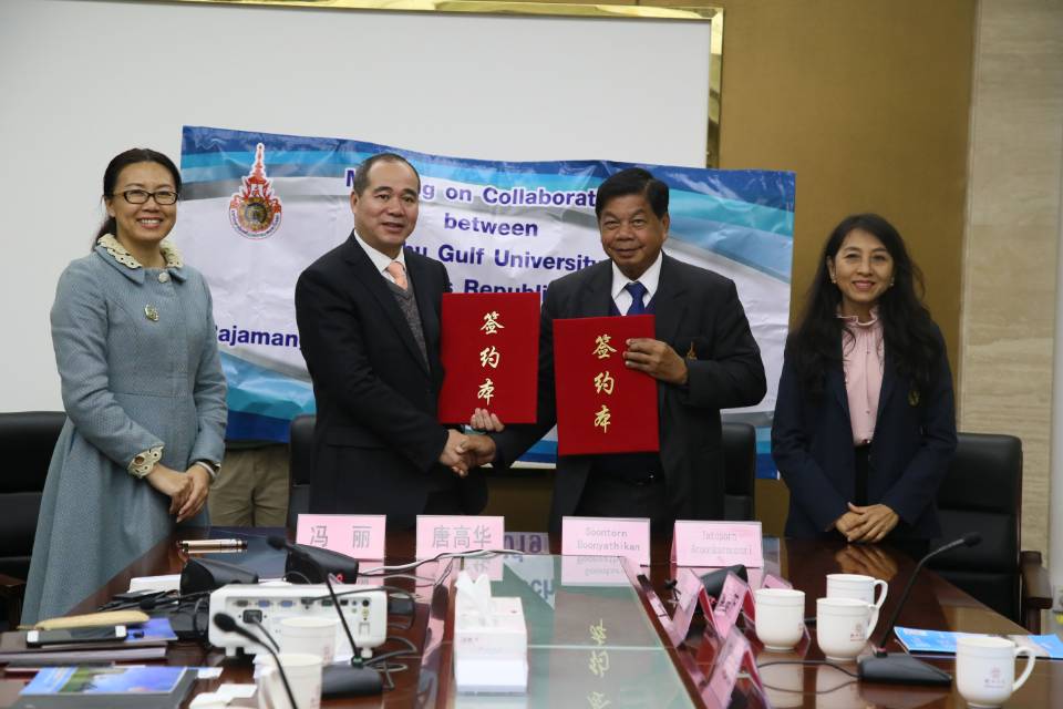 3月8日下午,由泰国东方大学、素呖他尼大学和诗纳卡琳威洛大学三所高校组成的代表团一行10人到beat365官网进行访问并与beat365官网签署了合作备忘录。副校长唐高华出席会议。