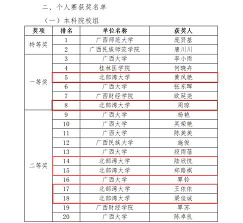 个人赛获奖名单截图(一)