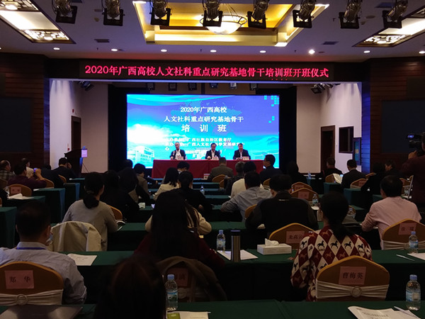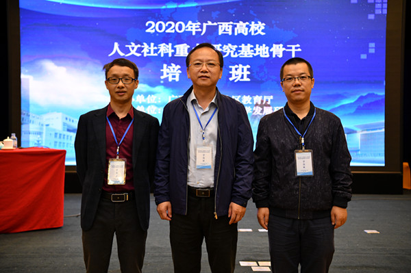 10月14-16日由广西自治区教育厅主办的2020年广西高校人文社科重点研究基地骨干培训班在桂林举行,来自广西高校30个人文社科重点研究基地的负责人和骨干参加培训。beat365官网副校长、北部湾海洋发展研究中心主任黄鹄携骨干教师乔鹏亮、刘新文参培。