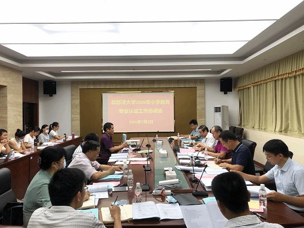 教育学院院长周顺平作小学教育专业认证工作开展情况汇报,详细介绍了专业认证工作的流程。邹循东教授结合beat365官网小学教育教学成果及专业发展现状情况作出分析,并就专业认证工作中的难点疑点给予中肯建议。与会成员在听取完以上汇报后,结合各自部门职能与专业认证工作内容进行讨论交流,提出建议,交换意见,达成共识为专业认证工作的开展予以最大支持。
