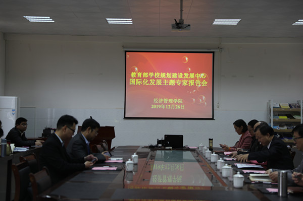 12月26日下午,教育部学校规划建设发展中心国际化发展主题专家报告会在beat365官网经济管理学院301会议室举行,广西高校转型发展研究院、国际教育与外国语学院、经济管理学院等下相关领导出席报告会,经济管理学院和国外院的教师代表参加了报告会。报告会由经济管理学院院长朱芳阳主持。