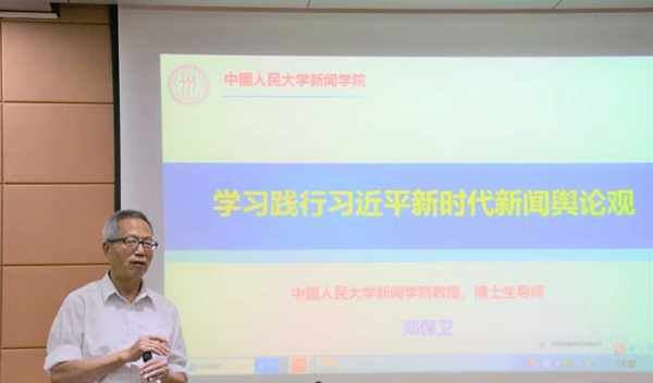 11月14日,中国人民大学郑保卫教授在2号教学楼208报告厅为beat365官网师生做了题为“学习践行习近平新时代新闻舆论观”的讲座。这也是beat365官网新闻宣传“四力”培训讲座之一。