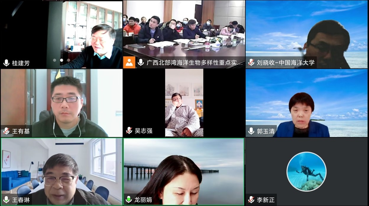12月29日,广西北部湾海洋生物多样性养护重点实验室(以下简称“重点实验室”)学术年会在海洋学院229会议室召开。学校副校长黄鹄出席会议。重点实验室学术委员会主任、中国科学院水生生物研究所桂建芳院士,副主任、中国科学院海洋研究所李新正研究员、桂林理工大学吴志强教授线上参会。桂建芳院士和海洋学院院长许尤厚共同主持会议。