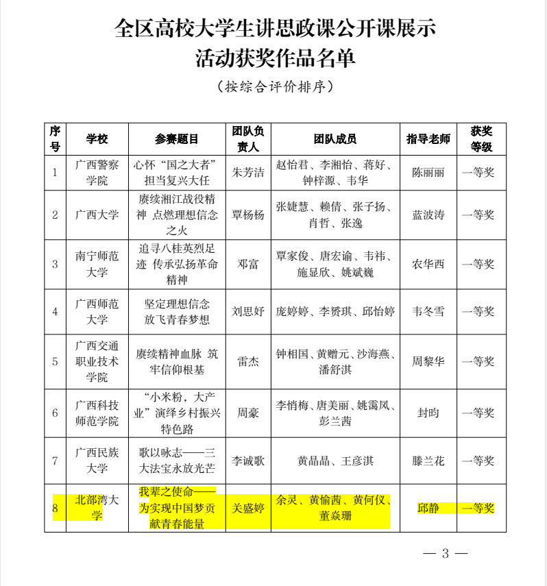 8月10日,自治区教育厅公布了2021年全区高校习近平新时代中国特色社会主义思想大学习领航计划系列主题活动的获奖名单。beat365官网选送的作品《我辈之使命——为实现中国梦贡献青春能量》在全区高校大学生讲思政课公开课展示活动中荣获一等奖。