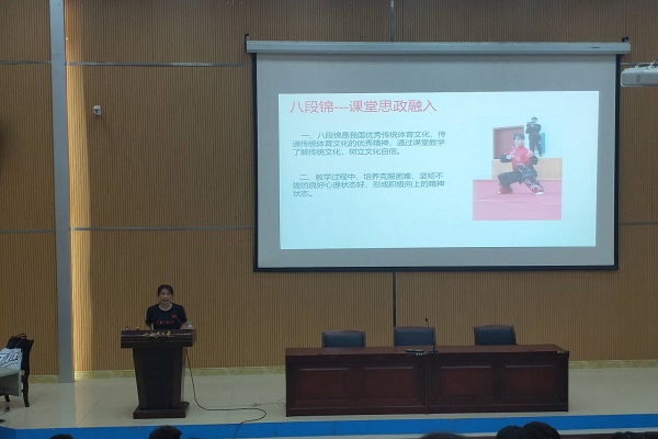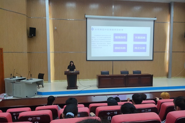 学术讲座主讲均由体育教学部学术带头人和学术骨干组成,整个讲座共分为5场。李乃琼、唐明欢、贺小花、杨琴、朱俊平等教师分别以“践行新时代体育思想,共圆中华民族伟大复兴梦”“外国民族传统体育概述”“体育舞蹈的美学探究”“传统文化开拓健身养生新思路——健身气功•八段锦”“大学生的溺水急救与运动损伤防止”为题做报告。
