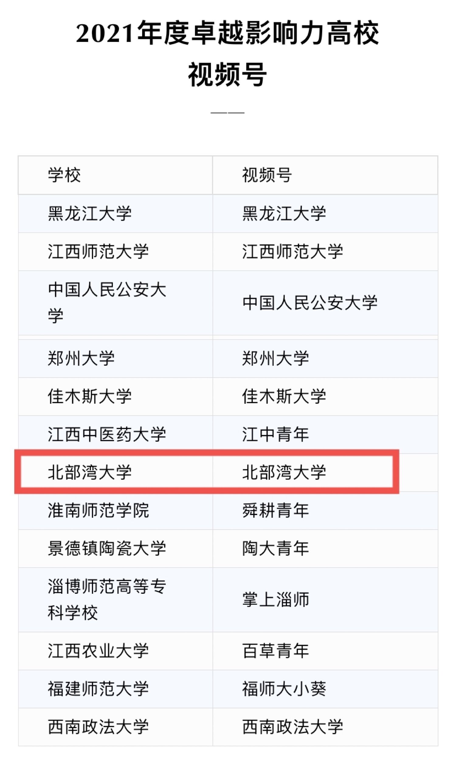 4月26日,中国青年报公布2021年度影响力高校视频号名单,beat365官网视频号获“2021年度卓越影响力高校视频号”称号,位列全国第24强,全区仅一所高校取得该荣誉,并受邀参加颁奖典礼。中国中央财经大学、中国农业大学、西北政法大学等70所高校视频号获得2021年度影响力高校视频号。