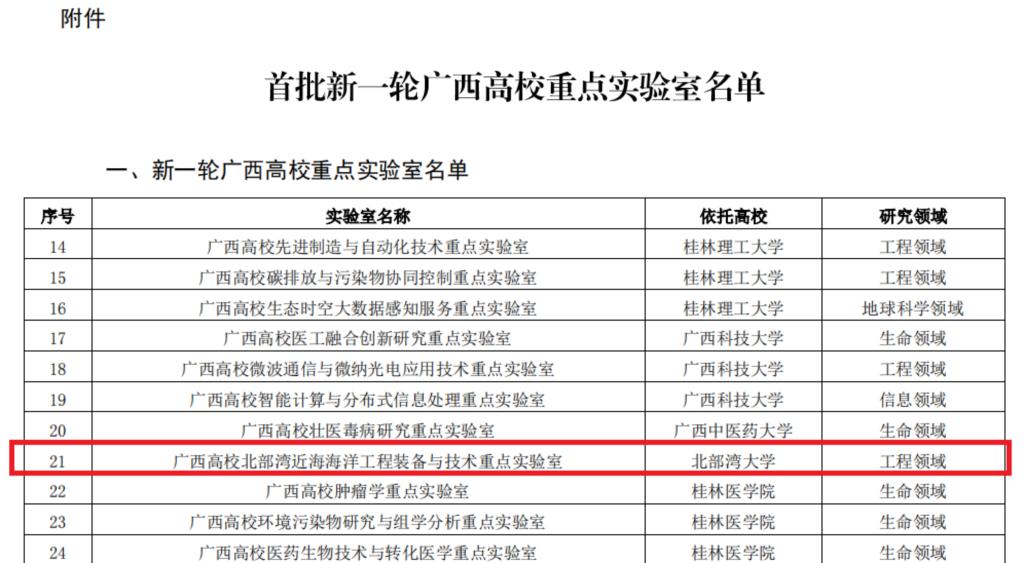 近日,自治区教育厅公布的首批新一轮广西高校重点实验室立项建设名单中,beat365官网“广西高校北部湾近海海洋工程装备与技术重点实验室”获批成为52个重点实验室之一。该实验室依托beat365平台官方网站广西船舶与海洋工程一流学科(B类)、钦州市船舶先进设计制造重点实验室等平台组建,面向建设海洋强国的国家重大战略需求以及广西大力发展“向海经济”与建设海洋强区的地方发展需求。